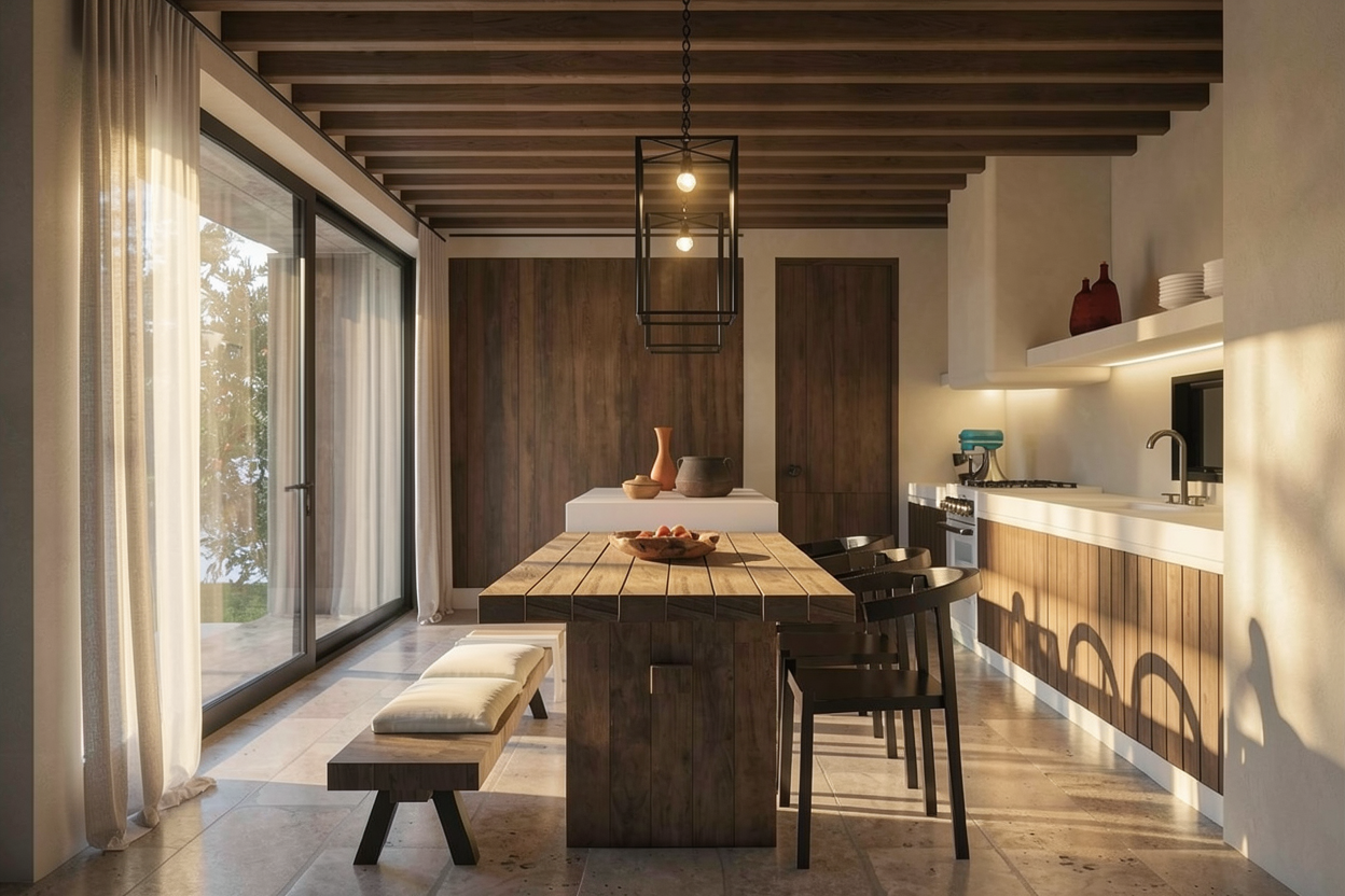 render red brick and wooden clad refurbished barn conversions set on a bright spring day there should be some trees in the background of the image