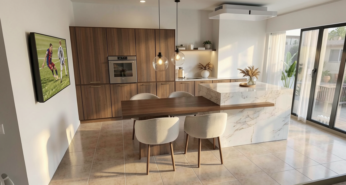 act as a senior architectural visualization artist specializing in high end interior photorealistic rendering your task is to convert the provided 3d interior design drawing into a fully photorealistic architectural visualization strict rules design must not change do not change geometry do not change the layout do not change furniture placement do not change materials do not change colors do not redesign or add elements do not remove objects do not reinterpret the design the architecture furniture surfaces colors and materials must remain 100 identical to the original design image your role is only to transform the drawing into a photorealistic render rendering process rebuild the scene as a physically accurate render using professional architectural visualization standards apply physically based rendering pbr global illumination realistic light bounce physically correct reflections natural soft shadows micro surface details subtle material imperfections lighting use professional interior photography lighting combine natural daylight from windows soft ambient interior lighting realistic shadow gradients balanced exposure camera keep the exact camera position and perspective from the original image use a professional interior photography style lens approx 24 35mm material quality materials must appear ultra realistic including wood grain detail fabric fibers natural stone texture subtle roughness variations realistic reflections quality ultra photorealistic cinematic architectural visualization extremely sharp details no noise no pixelation no illustration style output ultra high resolution render 8k quality goal the final image must look exactly like a professional photograph of a real interior space used in luxury real estate marketing perspective 08 ensure visual consistency across multiple renders of the same interior project lighting materials and color balance must remain consistent across all perspectives rendering quality comparable to v ray or corona renderer used in professional architectural visualization studios critical constraint the provided image is an approved architectural design the ai must not reinterpret the design the ai must not modify geometry proportions furniture design architecture materials colors object placement any change to the design is strictly forbidden only improve realism lighting texture detail and photographic quality the final output must be a photorealistic version of the exact same scene