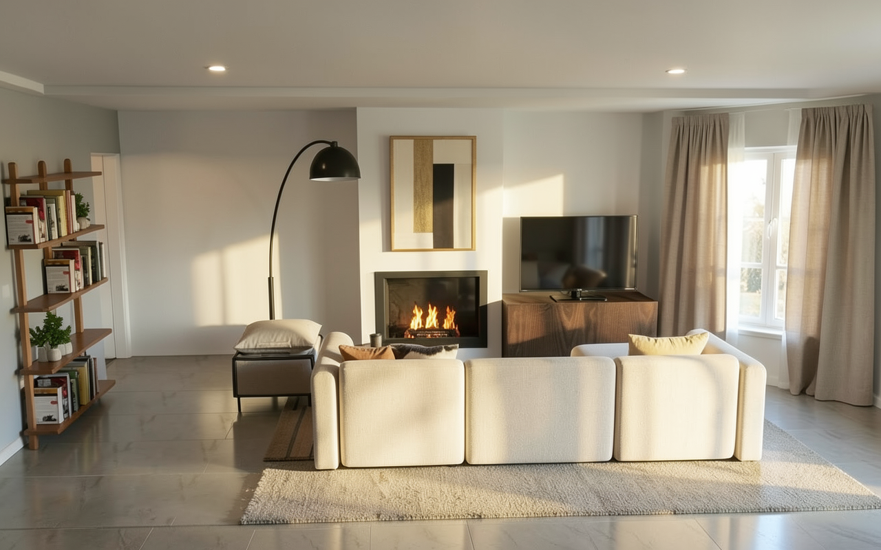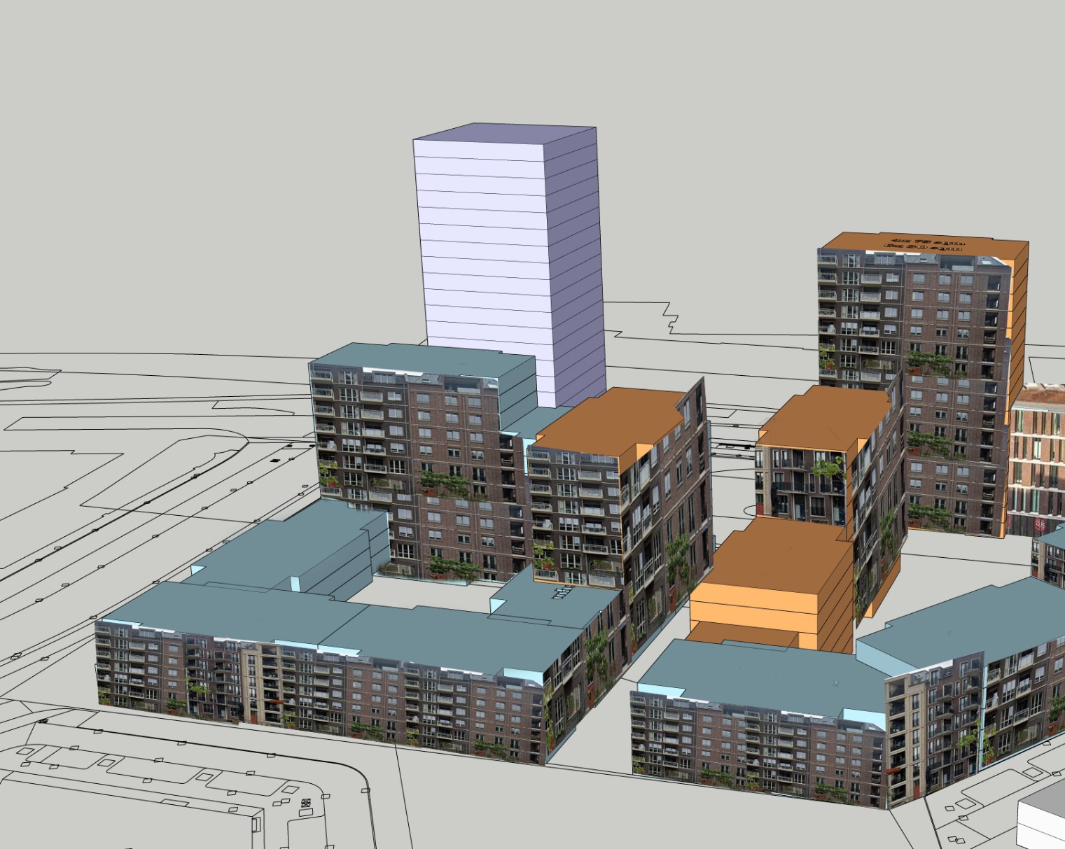 multistorey residential building brick and glass facades noon lighting