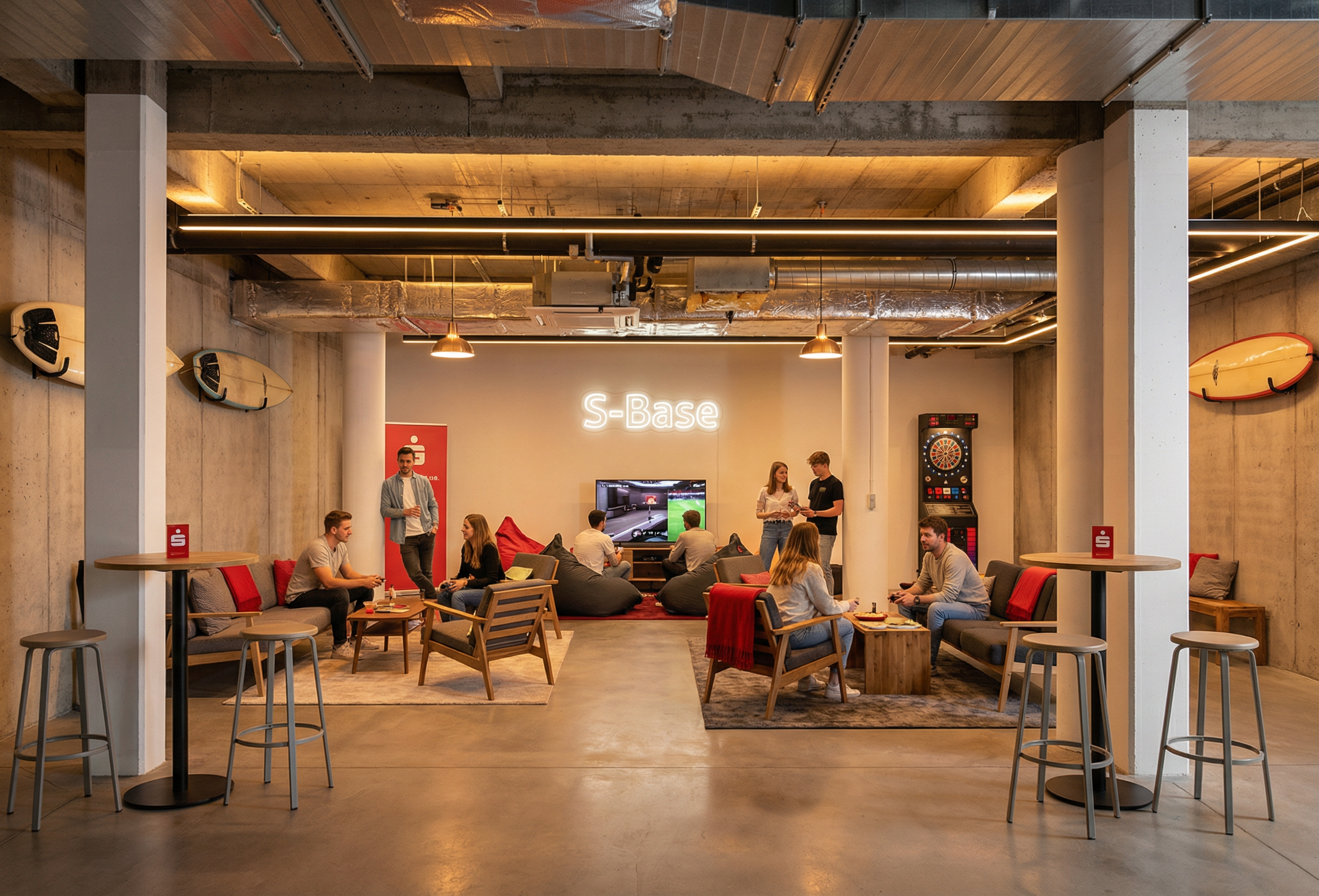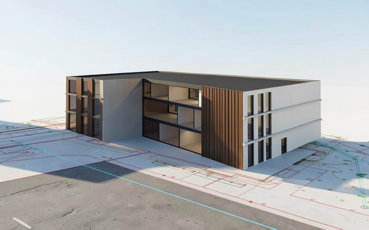 photorealistic interior soft light through the windows floor light polished concrete