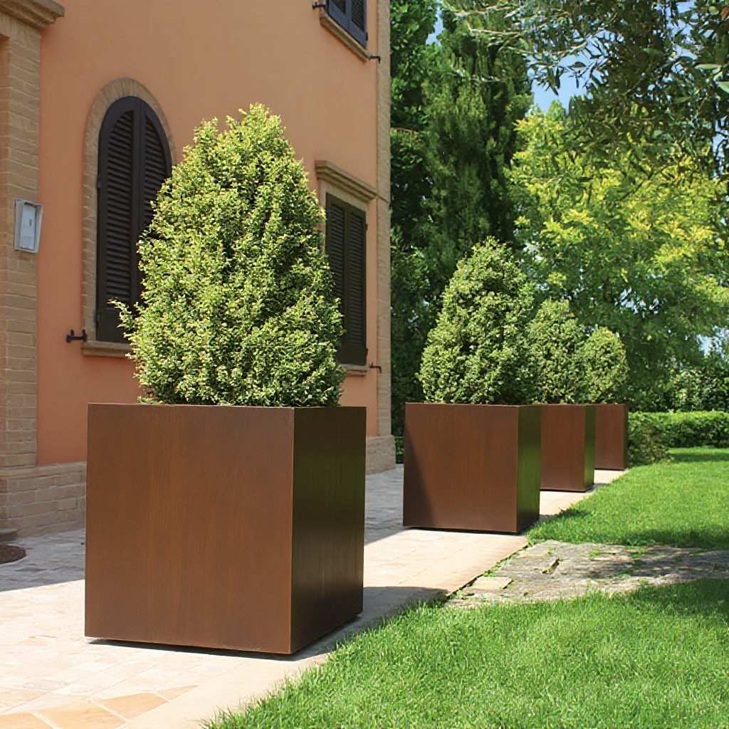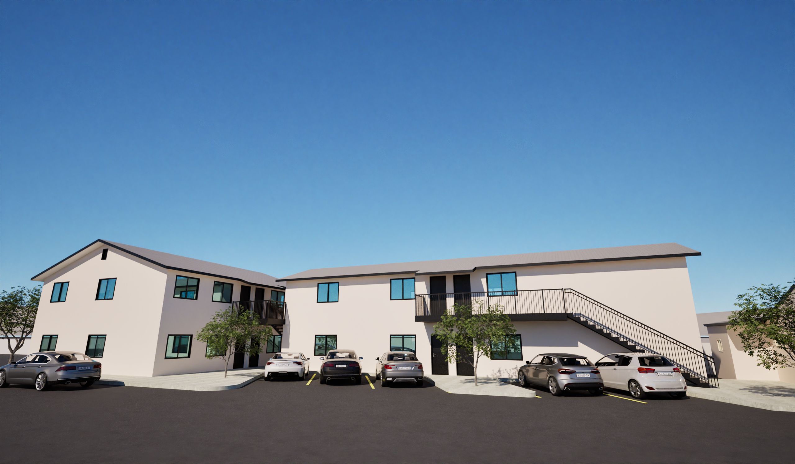 smooth white plaster walls with black frame windows black metal guardrails and stairs black railings sunny california weather with native california trees and landscape