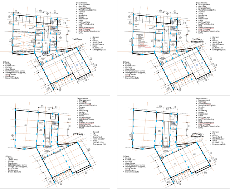 convert this floor plan into a architectural isometric 3d view of a full house show the space from an elevated angle with furniture walls and details visible design a 4 500 sqm modern industrial facility for laundry industry r d operations training and events located approximately 80 meters from ortigas extension program requirements strictly follow area allocations warehouse 1 600 sqm storage for industrial laundry machines parts and equipment loading bay with parking capacity for 3 x 40 foot container trucks clear forklift circulation and staging area office spaces 800 sqm management r d design engineering sales and support offices open workspaces with enclosed meeting and focus rooms event and training facilities main events hall 500 sqm capacity approx 250 pax suitable for seminars product launches and demonstrations 3 function rooms with combined capacity of 120 pax divisible flexible layout parking area capacity for 50 parking slots including service and visitor parking facility purpose acts as an r d hub for existing and new laundry products supports product testing scaling demonstrations and partner training design constraints and intent clear separation between industrial operations office r d and public event areas visitors should access event and training spaces without passing through warehouse operations industrial grade structure scalable layout and future expansion ready architectural style modern industrial high ceilings for warehouse and event spaces exposed structure durable finishes functional lighting generate zoning diagrams accurate floor plans 3d massing interior perspective views focusing on warehouse r d offices and event spaces use the same furniture as shows on the plan do not change the orientation of the floorplan