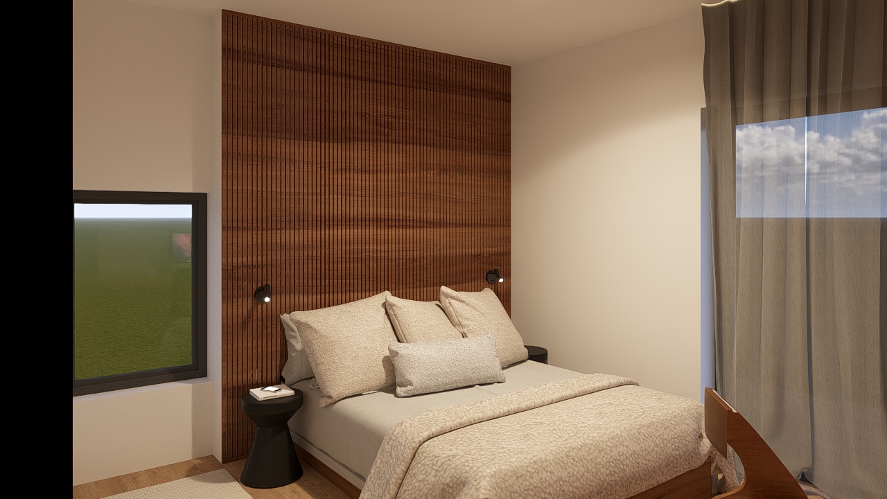hyperrealistic interior render enhance natural lighting and overall lighting realism make the wooden headboard a lighter wood