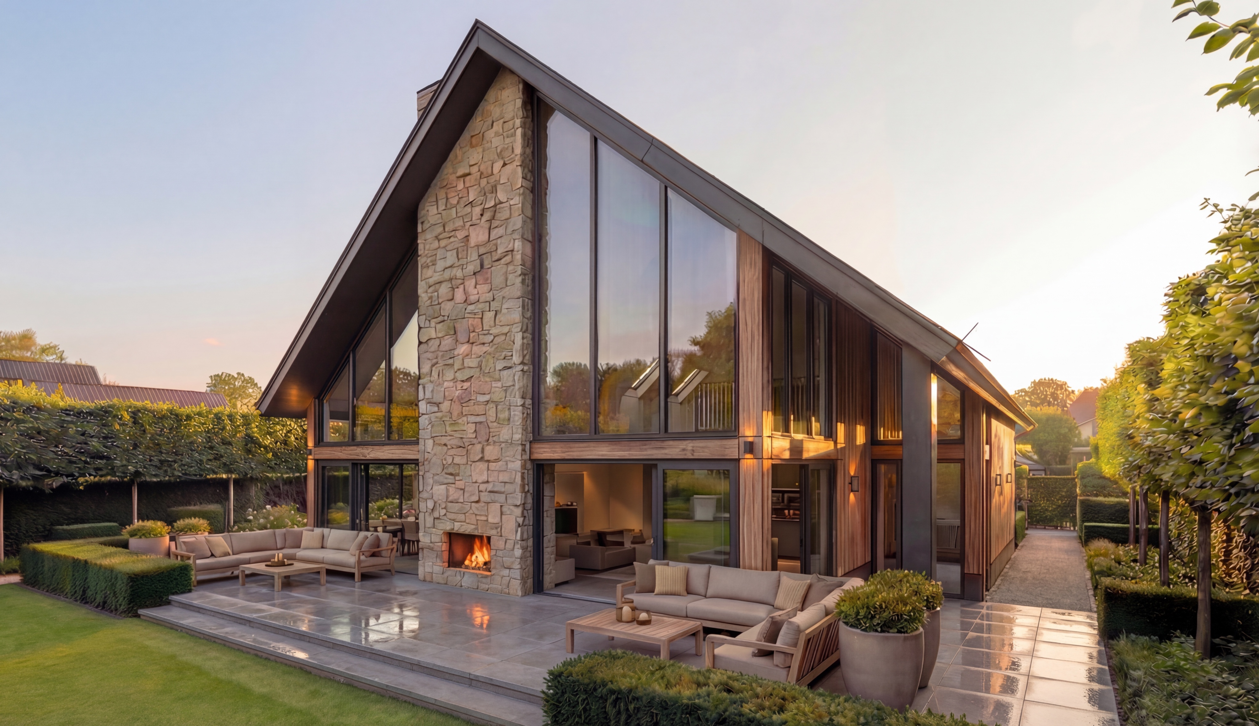 hyper realistic architectural photography high end interior design soft natural sunlight streaming through windows long soft shadows subtle ambient artificial lighting dimmable warm led accents realistic textures 8k resolution highly detailed shot on phase one xf global illumination raytraced reflections clean minimalist aesthetic lock all previous settings subject delete water on terrace and make vide in living room