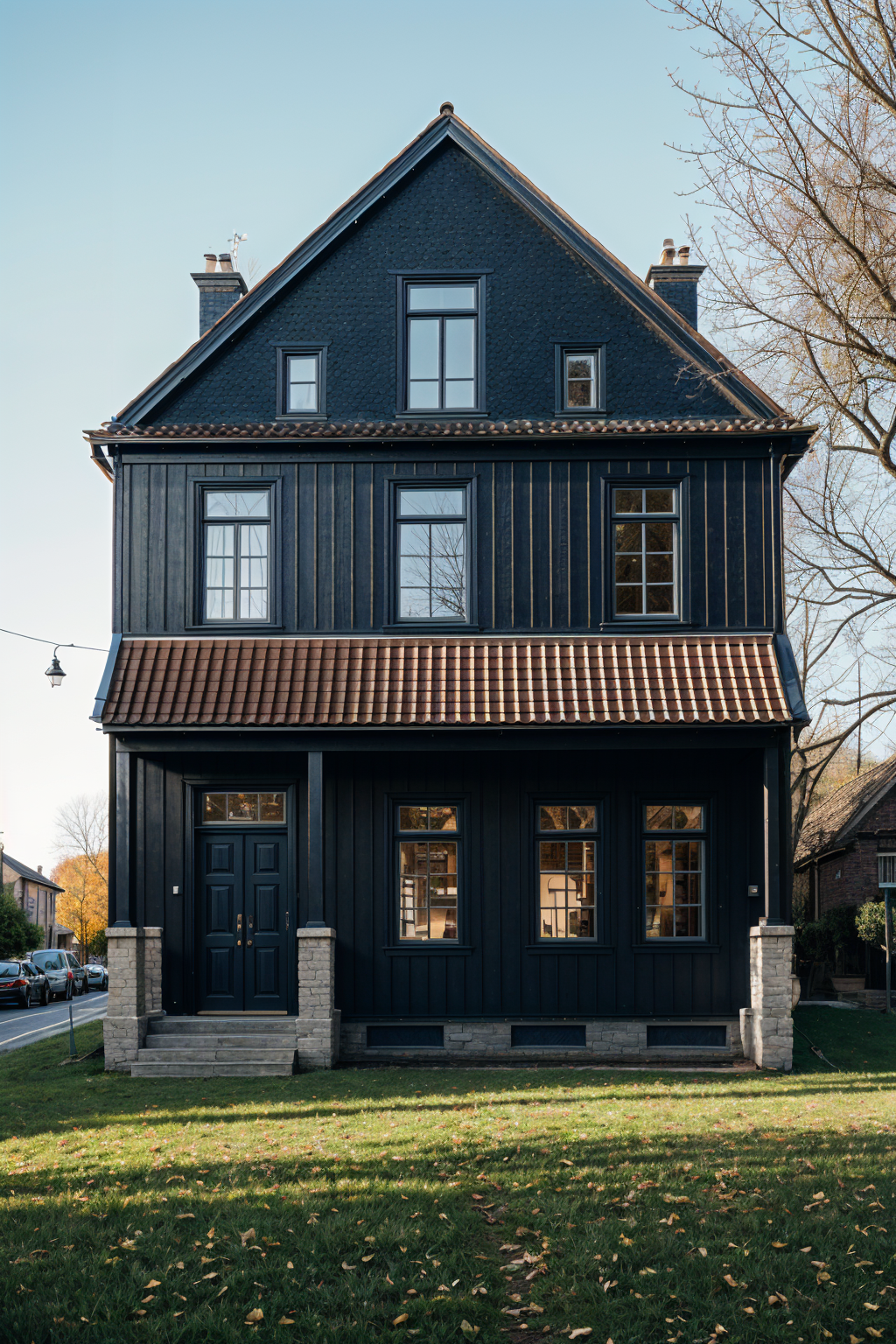 remove the black outline on the white facade and around the windows