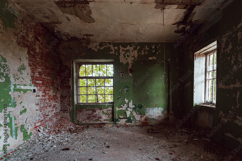 clean this up and furnish it like a modern bed room paint the walls white keep the structure of the walls and windows same dont change the room