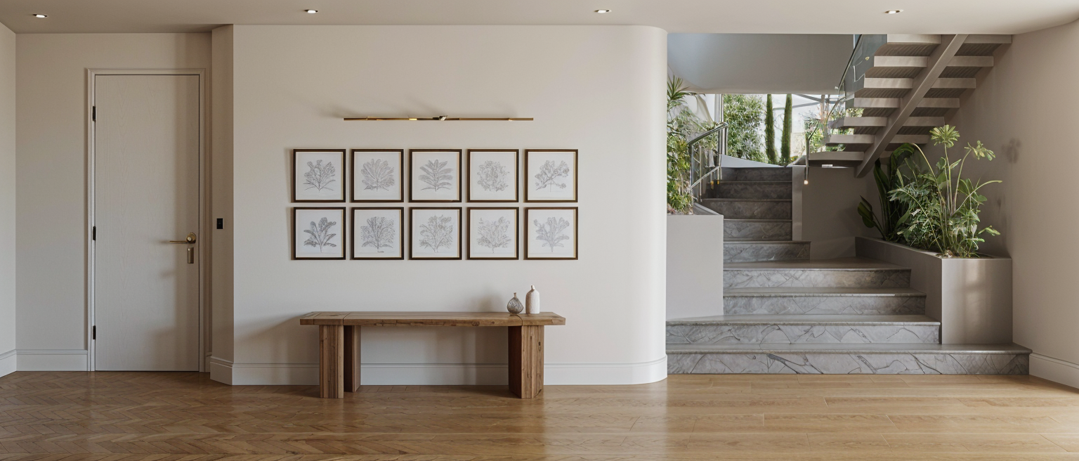 nogal wood indirect lighting front wall in mirror vertical indirect lighting for painting on the left