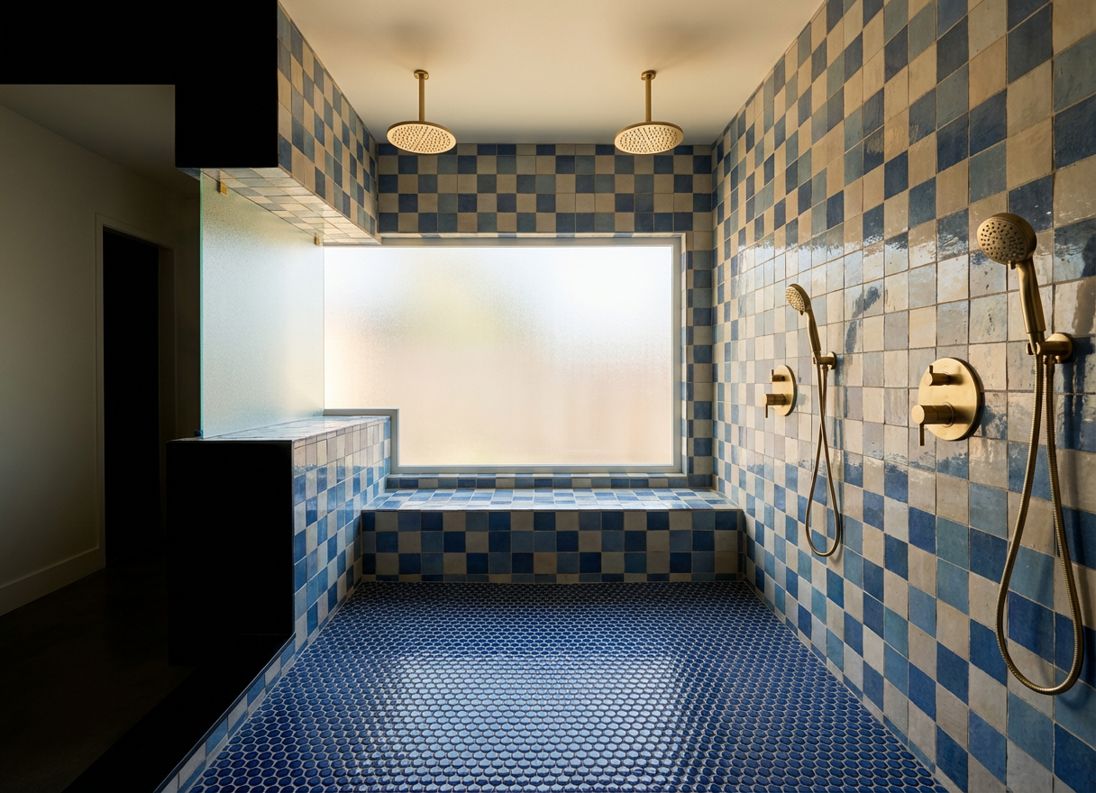 a realistic podcast studio keeping the original colors and overall layout unchanged the space features a warm and inviting atmosphere illuminated by soft warm light coming from a library bookshelf in the background the lighting creates a cozy intimate mood with natural shadows and realistic textures high detail photorealistic style add people and microfone