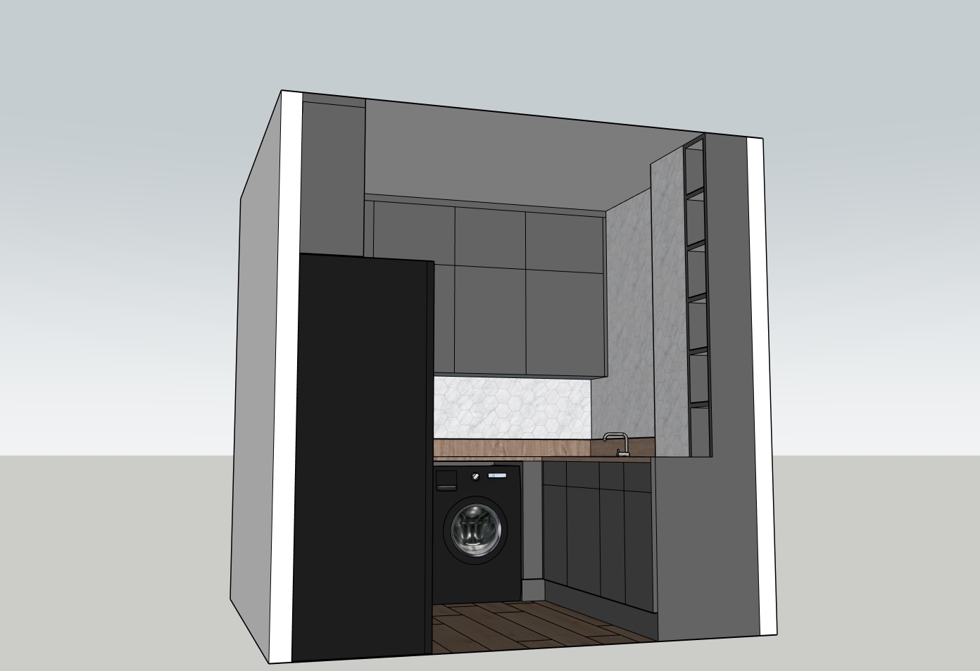 no background and 4 small recessed downlighters under cabint lighting