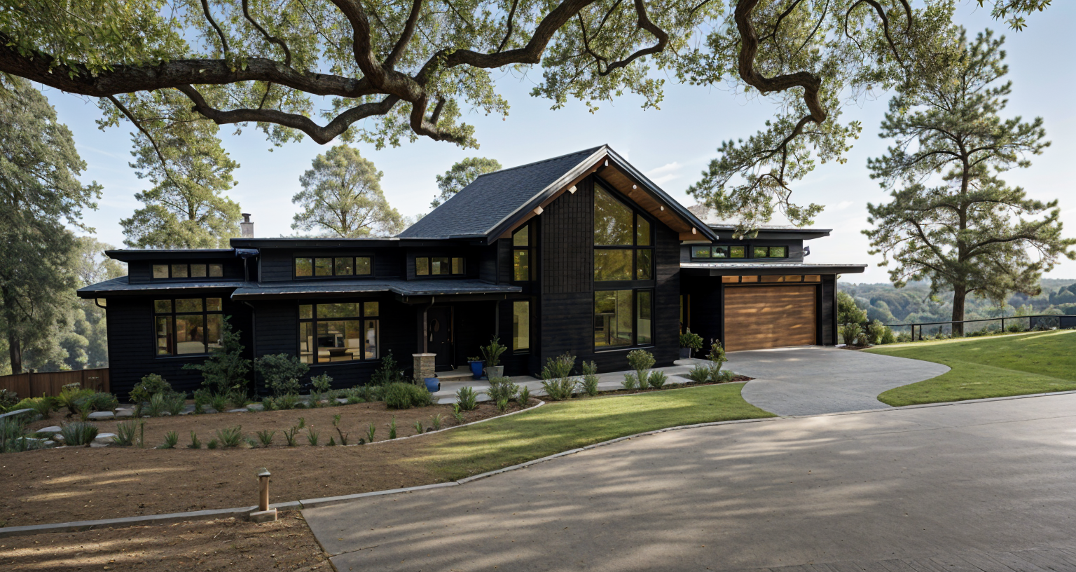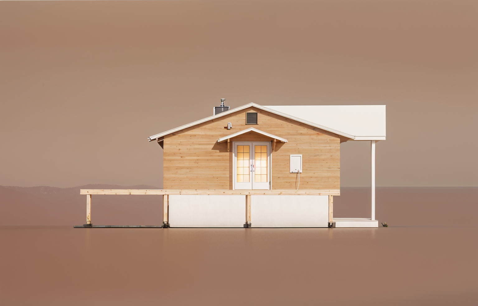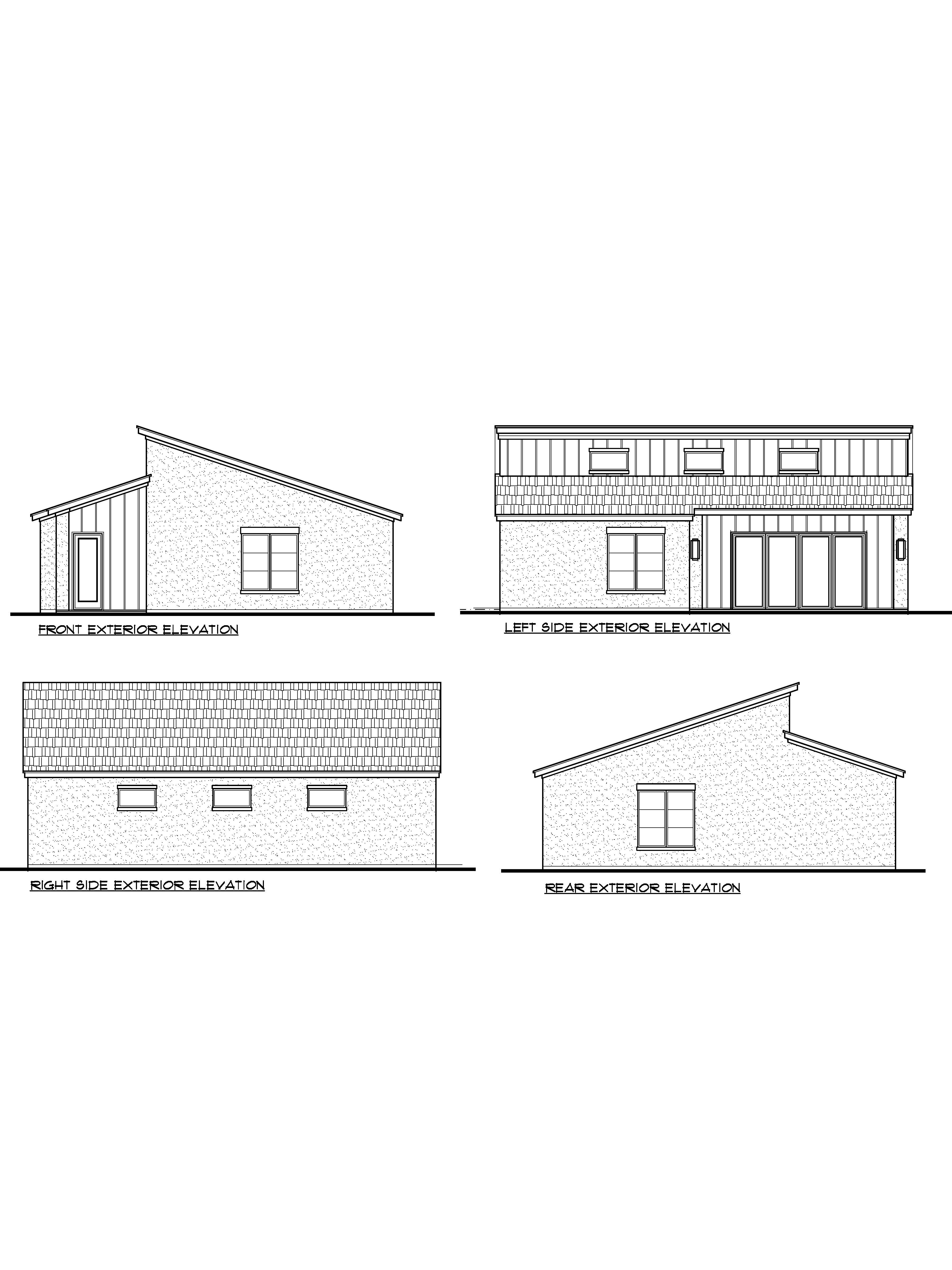 combined the elevations to a 3d model black roof white paint dark gray where the vertical lines are architecture