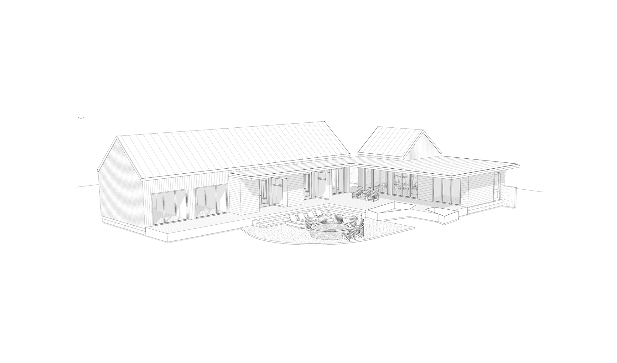 front view of a clean modern spa architectural exterior rendered in cinematic vibrant golden hour lighting with blue skies mountain modern with heavy timber architectural style black vertical wood siding beautifully lush green manicured landscape around structure with hedges and gardens black standing seam metal roof prominent cinematic oregon coast vegetation with a valley of trees below the spa high fidelity photorealistic visualization crisp shadow falloff refined facade geometry soft atmospheric depth premium architectural photography mood ultra clean composition and materials dark trim around windows two soaking tubs