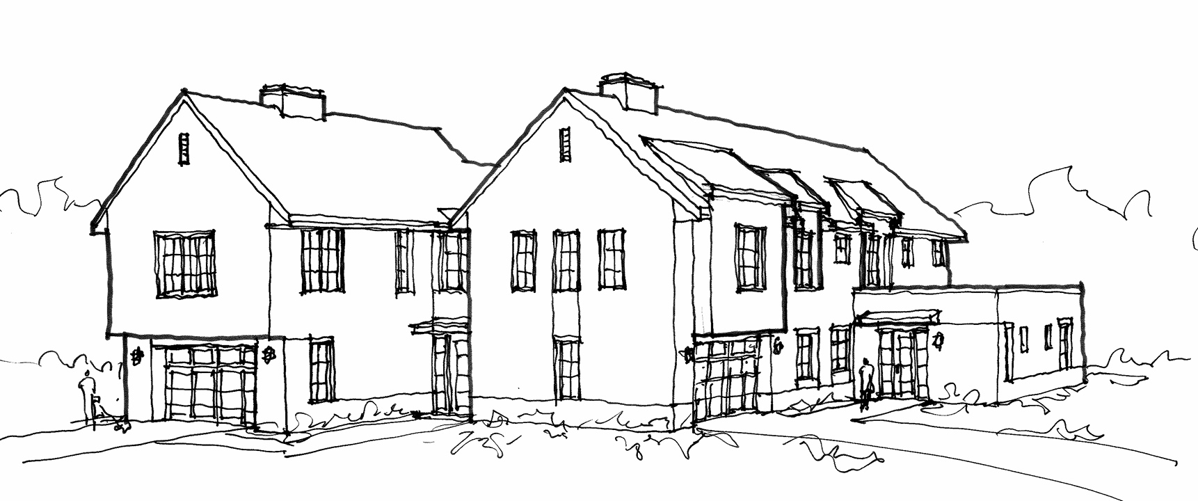 make front left garage facade old stone veneer everything else should be mix of wide plank white clapboard and white stucoo with black trim windows add modern detail above garage ie metal shed roof and make the 2 entrance doors with a lot of glass