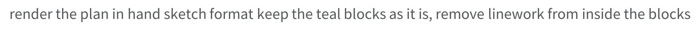 render the plan in hand sketch format keep the teal blocks as it is remove linework from inside the blocks
