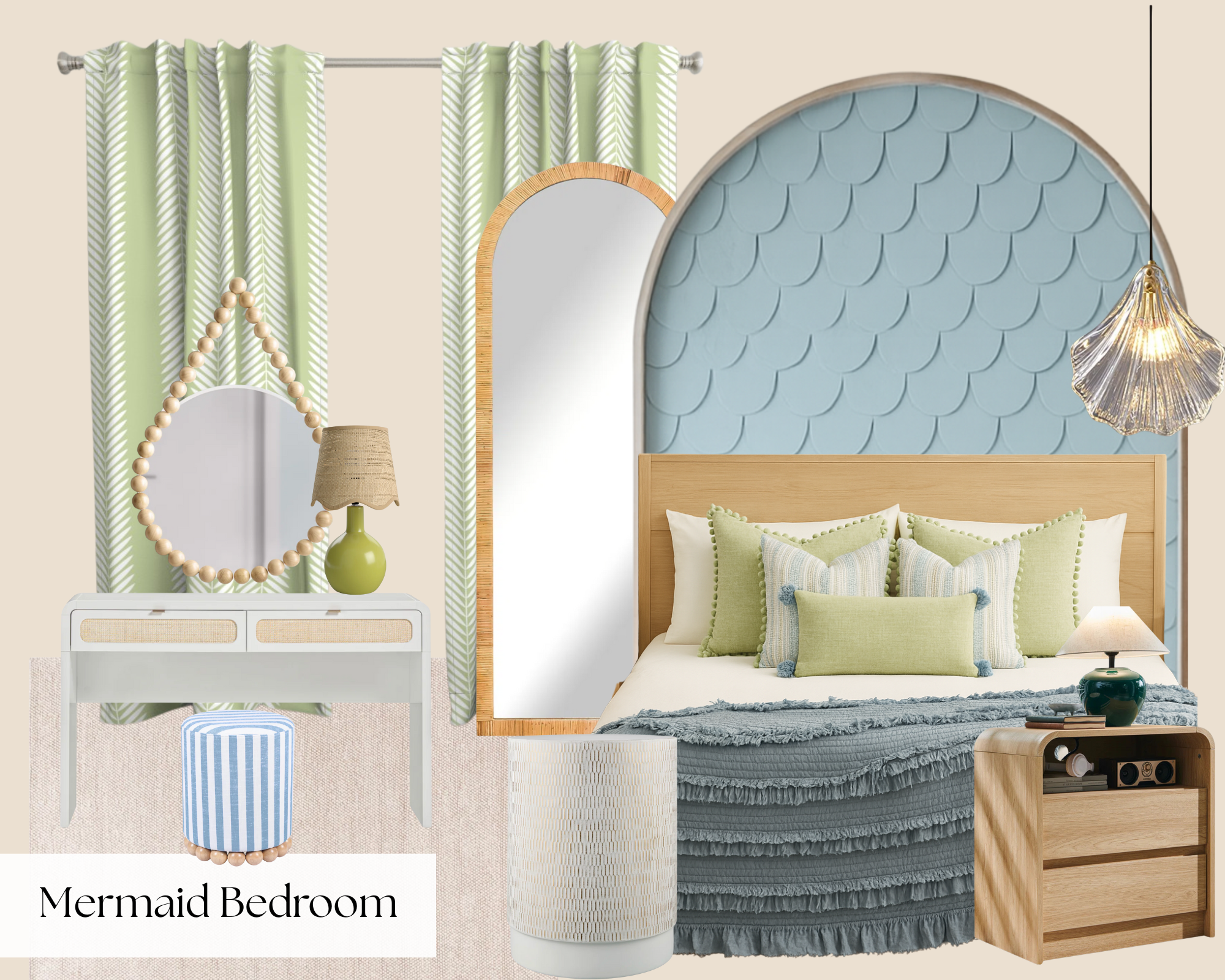 make it a short term rental bedroom with 2 queen beds and the scallops as an installation behind beds