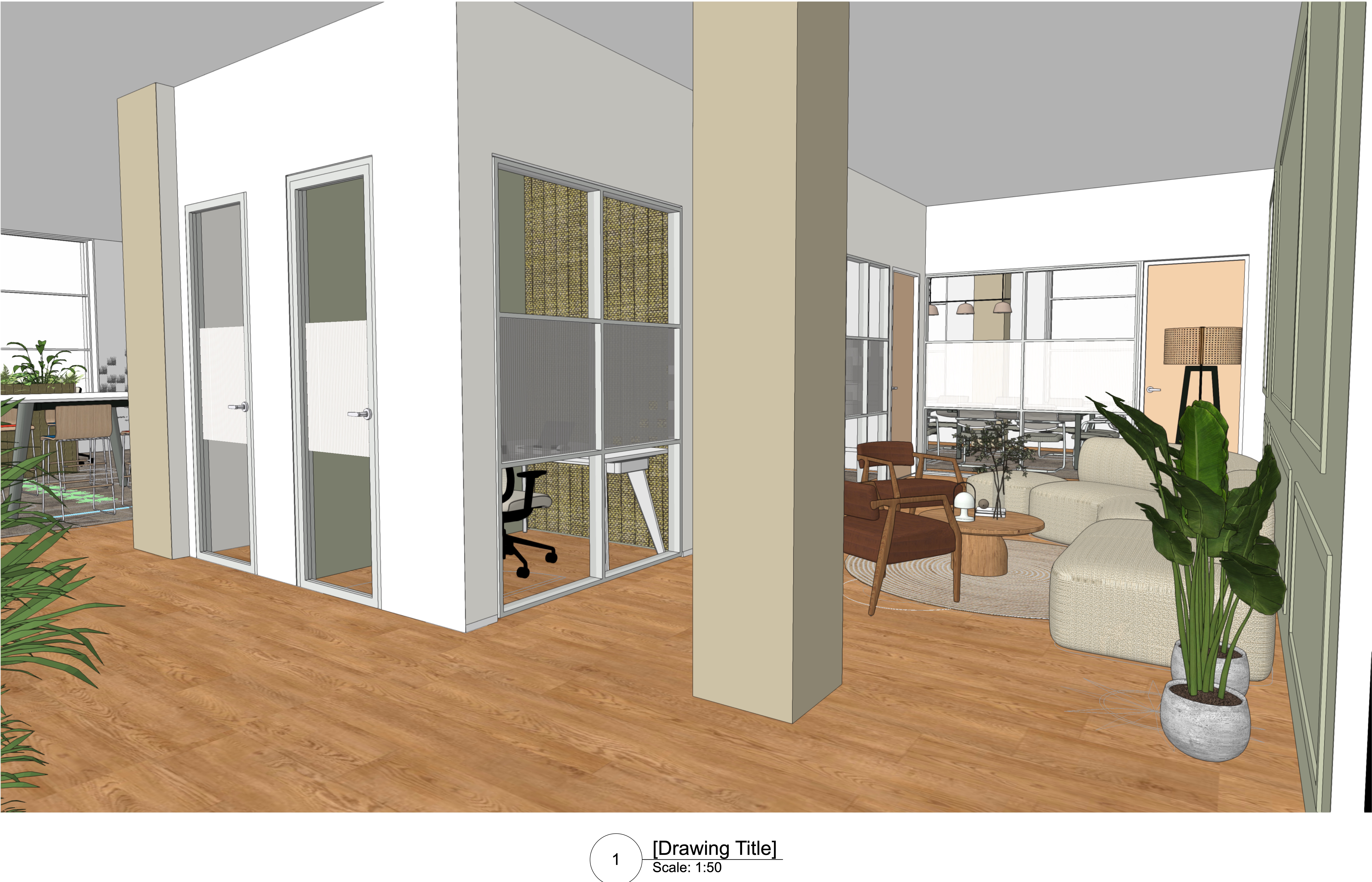 add soft natural lighting and shadows make the space look brighter and realistic add soft glow to floor lamp and pendant light in meeting room