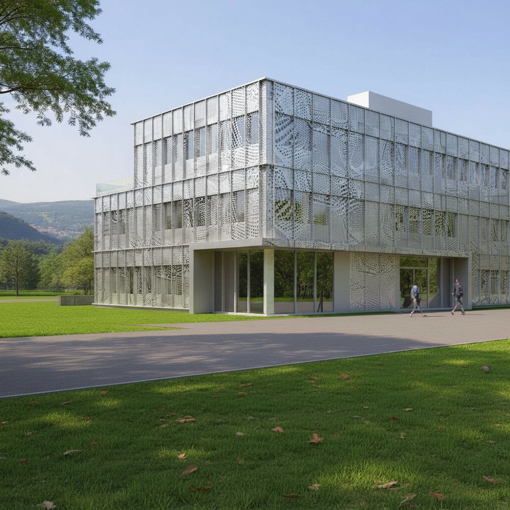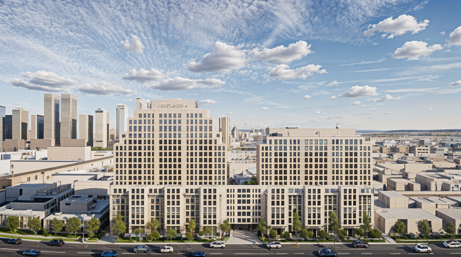 warm lightning hardwood flooring and white cabinets with black countertop and white bricks backsplash add a pool and grass in the patio at the background