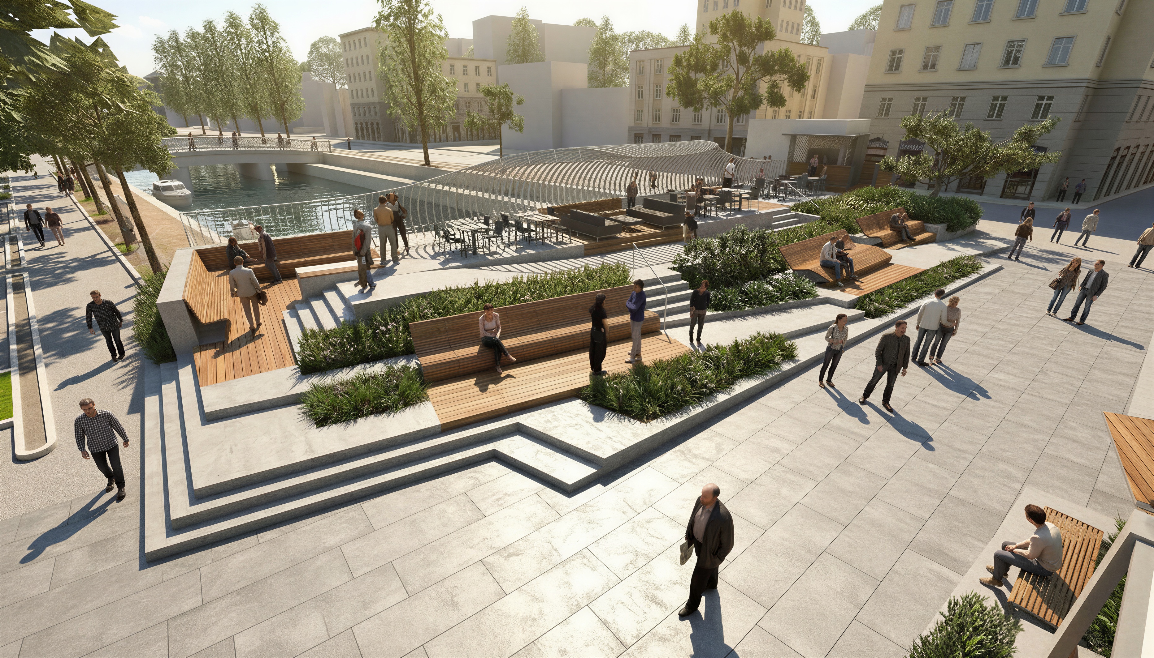 night view with many people chatting and having an aperitif