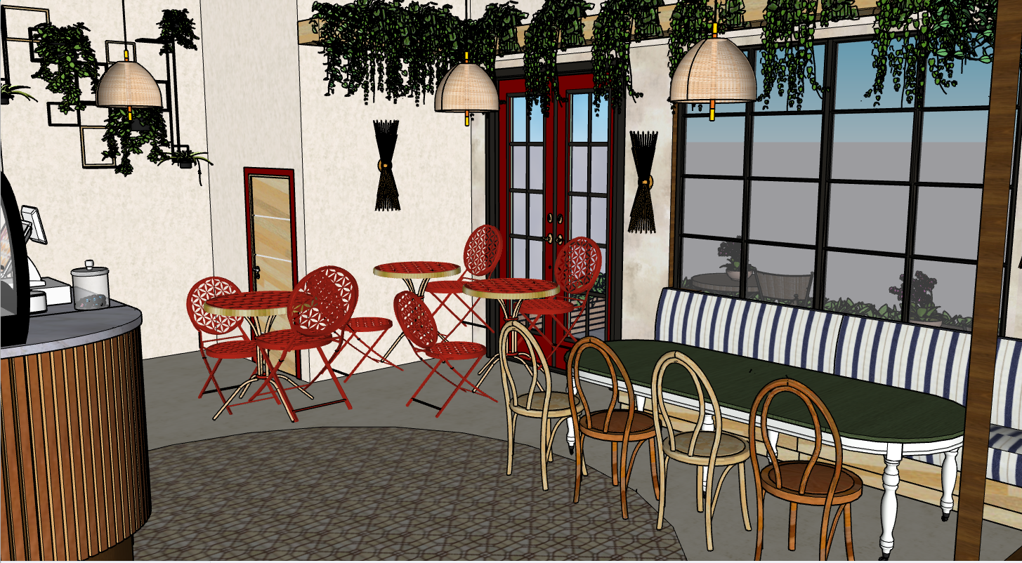 natural lighting make textures realistic add artificial lighting make the background outside the window a city scenery
