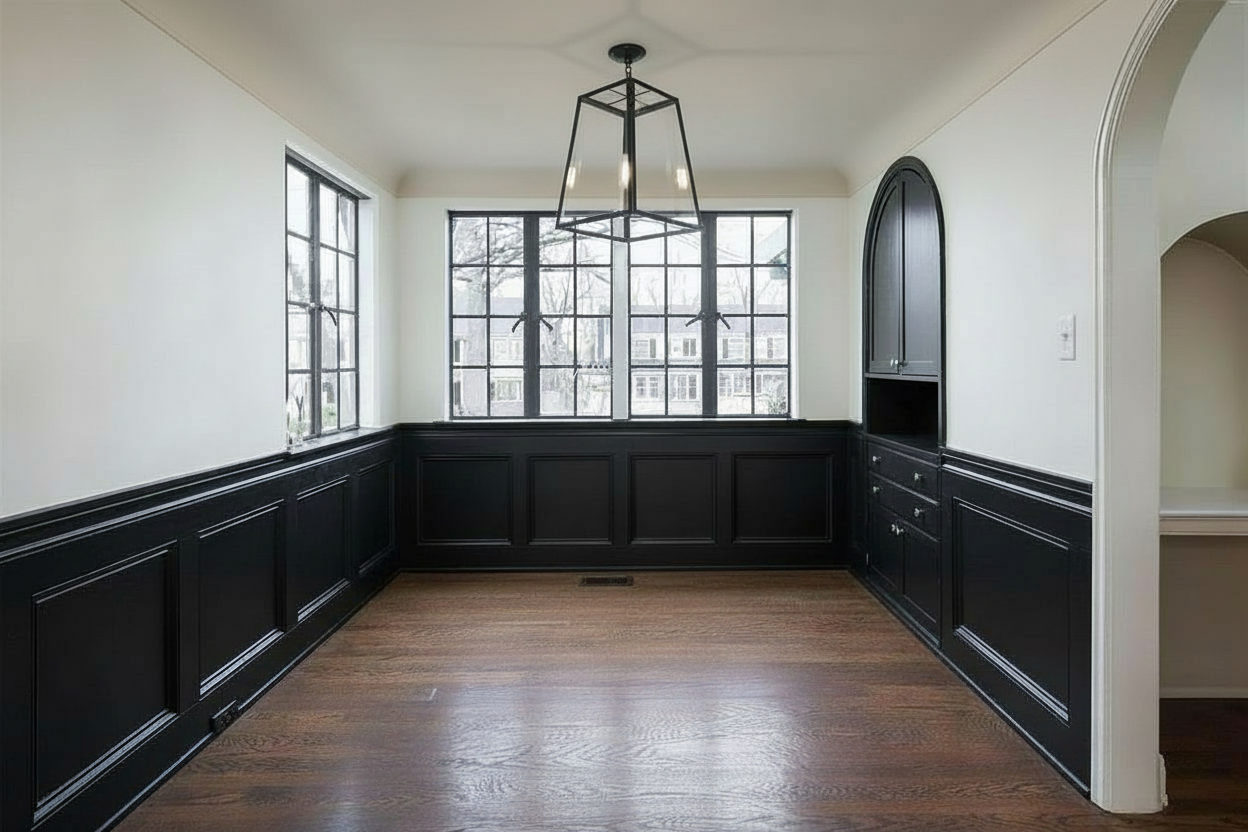 change arched doorway trim to black change walls to white