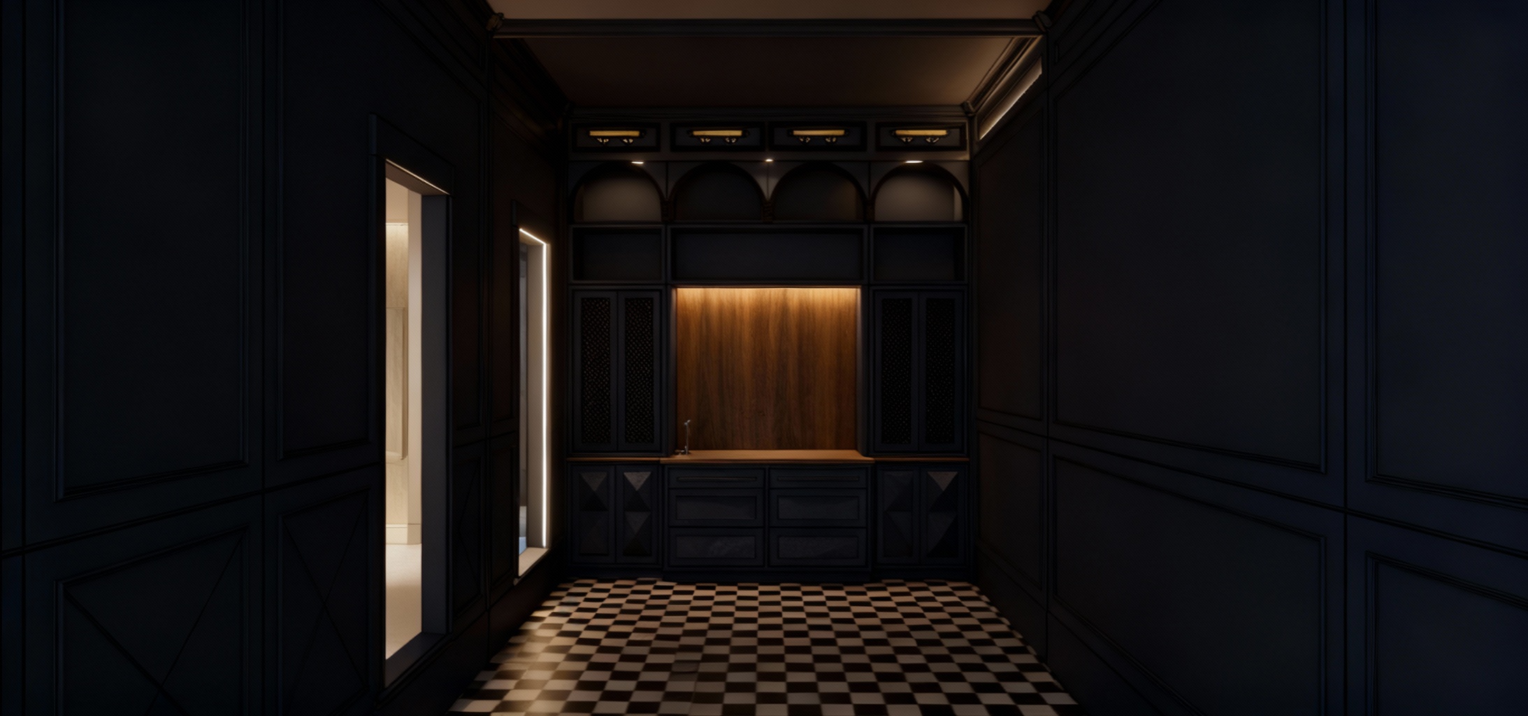 house on slight hill off white painted brick copper gutters and downspouts dark blue grey slate roof black frame windows downstairs white frame windows upstairs grass front yard and curved paved driveway with pick up truck afternoon light low bayou river with no trees behind house low bushes in front of porch small red maple tree to left close to house keep pick up truck in same spot