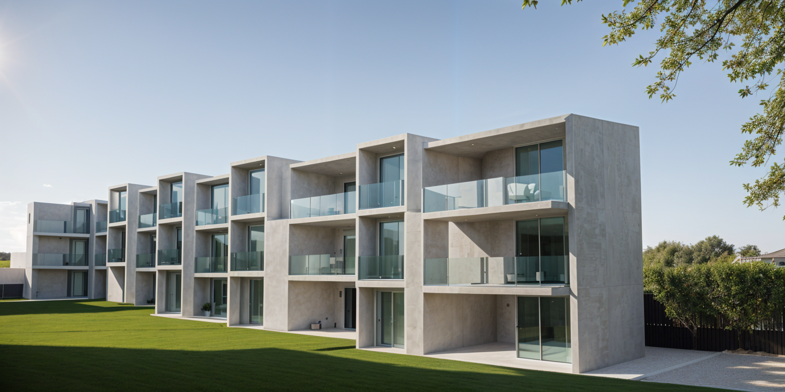 make the building in focus out of limestone on the podium light grey brick and glass materials on the tower portions real landscape throughout