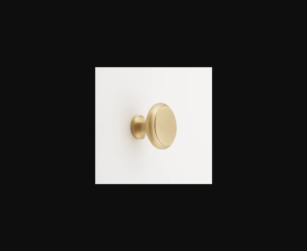refined transitional kitchen with deep navy blue inset cabinets and satin brass round knob hardware this satin brass circle knob installed on upper and lower cabinet doors calacatta gold marble countertop brushed brass faucet and fixtures white oak hardwood floors soft natural lighting upscale modern transitional kitchen professional interior design photography