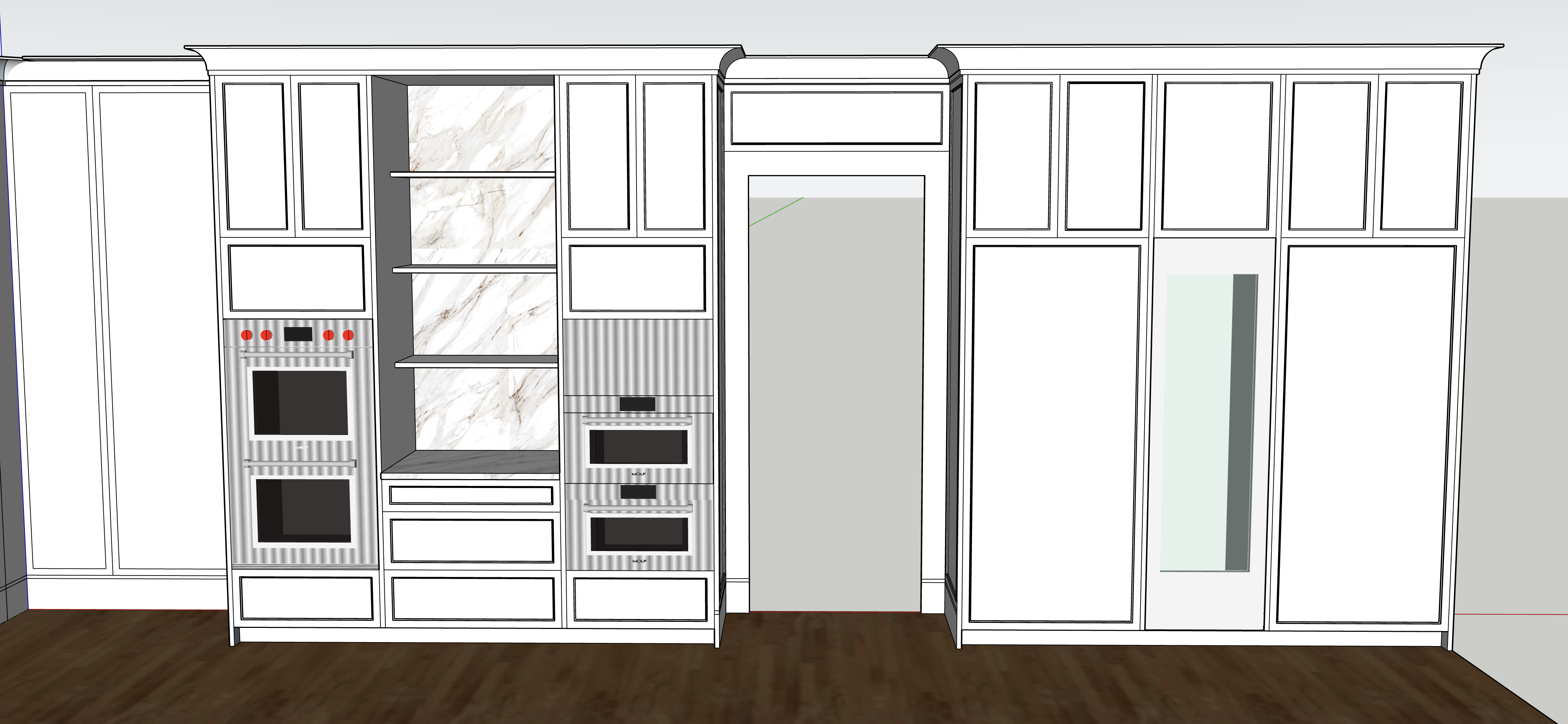 modernist exterior shot use a soft white color for the cabinets the marble backsplash should be a luxurious cream with delicate gold and gray veins include sleek stainless steel appliances and brush nickel hardware on cabinets the floor should have a light oak finish while the walls should be a light calming white use soft natural lighting to create a warm and inviting atmosphere architecture