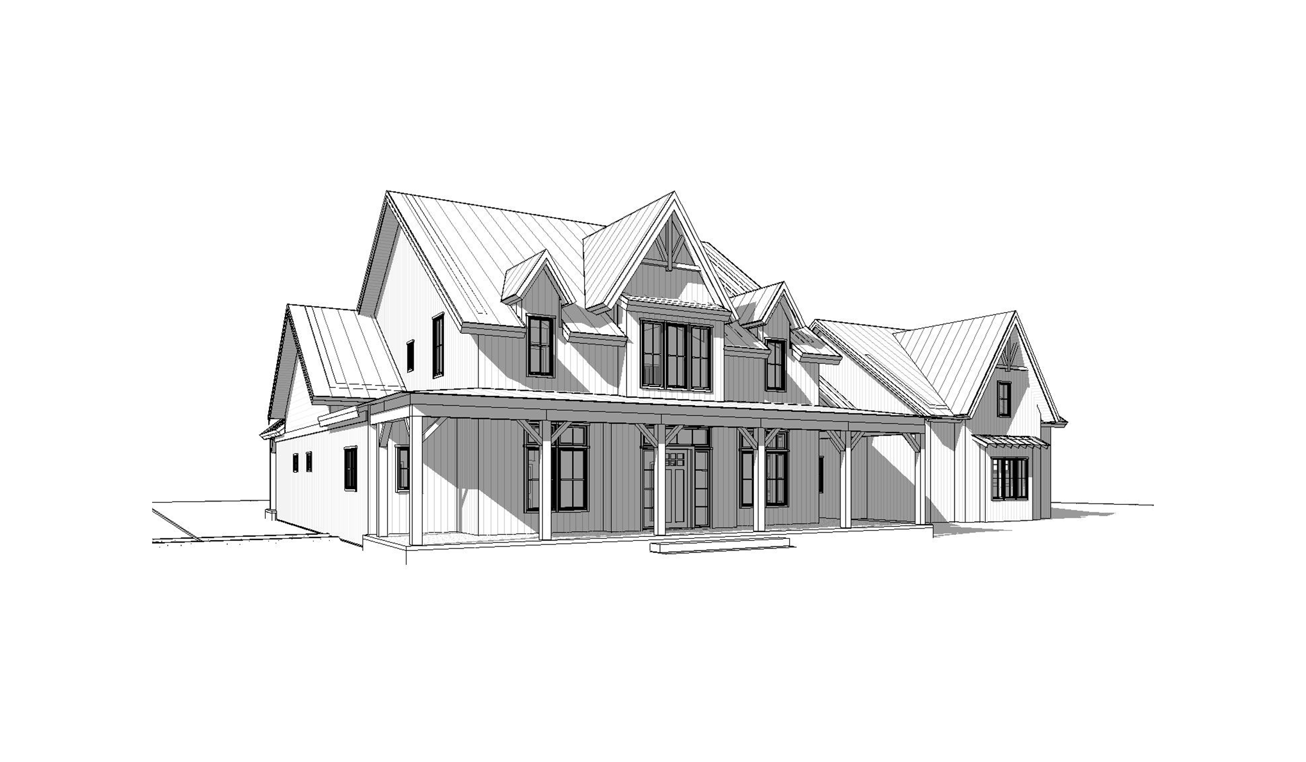 front view of a clean mountain modern architectural exterior rendered in cinematic vibrant day time lighting with vibrant colorful skies heavy timber architectural style vertical select grade cedar siding with warm wood accents manicured landscaping around structure with hedges black standing seam metal roof prominent cinematic big mountains background high fidelity photorealistic visualization crisp shadow falloff refined facade geometry soft atmospheric depth premium architectural photography mood ultra clean composition and materials black window trim dark roof trim black garage doors concrete driveway leading up to the right side of the house photorealistic render