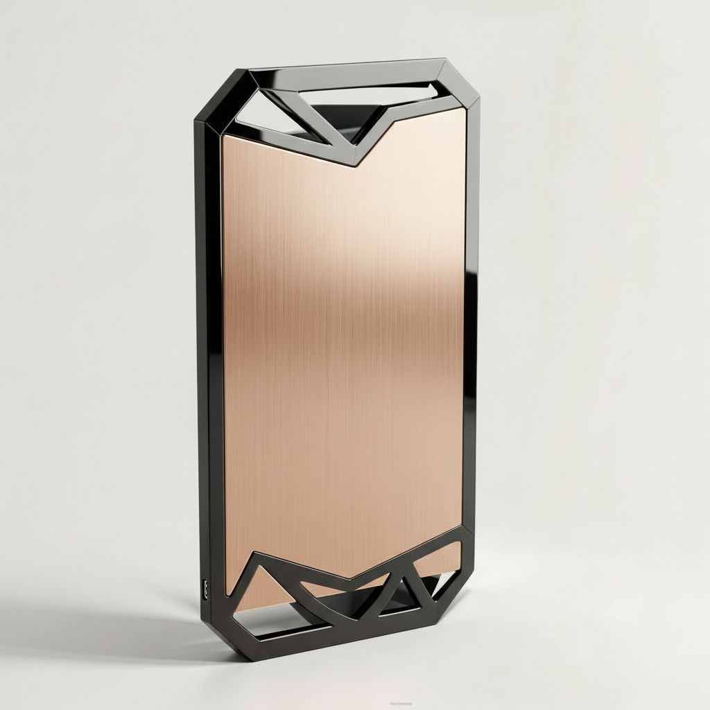 place the uploaded signage design graphic on a feature wall located beside the glass panels and main entrance of an exclusive 5 star hotel gym the signage panel should appear as a 3d wall mounted element made of aluminum with a hairline rose gold pvd finish and a black mirror background the signage panel dimensions are 330mm in height and 150mm in width the feature wall should be modern and elegant using materials such as dark stone warm wood panels or textured concrete complementing the luxurious gym interior that features glass partitions polished flooring and soft ambient lighting render the signage mounted at eye level with realistic lighting reflections and subtle shadows emphasizing the refined high end atmosphere of a contemporary 5 star hotel gym entrance