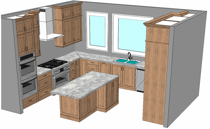 preserve the exact cabinet geometry fillers stiles rails door and drawer proportions toe kicks countertop thickness wall depths and all spacing exactly as shown do not change any dimensions alignment reveals or positions do not reinterpret or redesign the cabinetry or walls do not alter any colors or materials only enhance realism by smoothing lines improving lighting and shadows and giving the image a clean photo like appearance while keeping the entire design completely unchanged