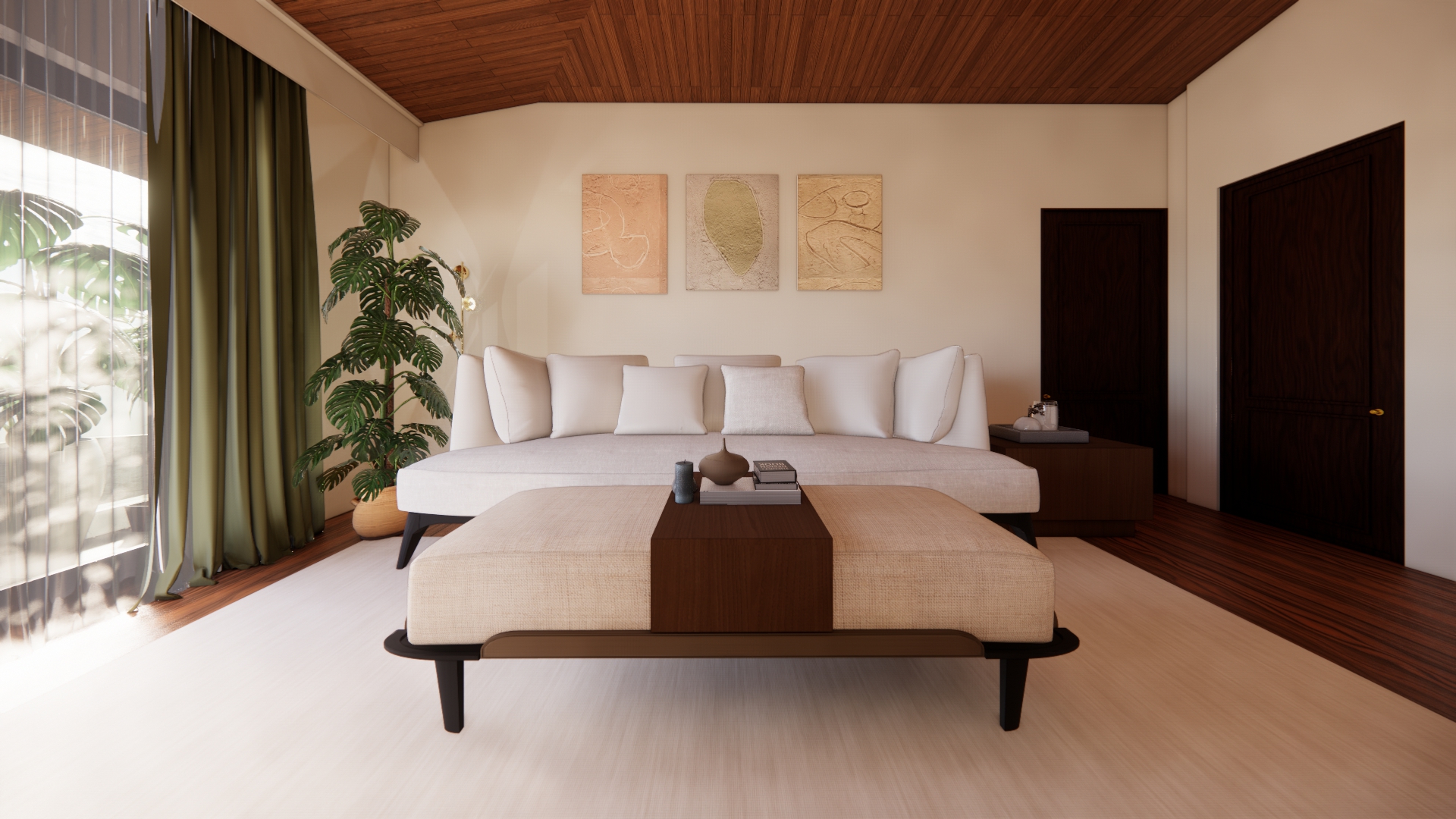 conserva la distribucion y forma actual de la habiatcion y muebles mejorando un poc las texturas conservando colores