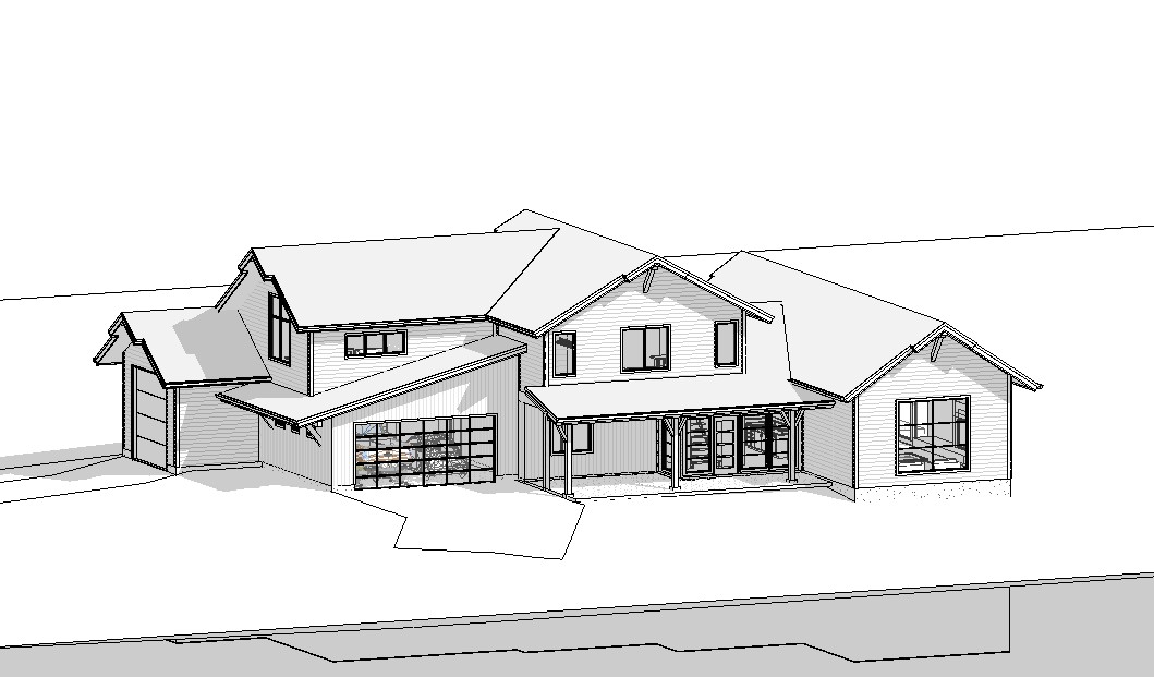 grey asphalt roofing the roof over the entry to be standing seam black the horizontal siding is a grey color the veritical siding is a light brown all fascia at the roof edge to be dark grey charcoal the posts at the entry are dark grey charcoal the windows are black the glass garage door is black