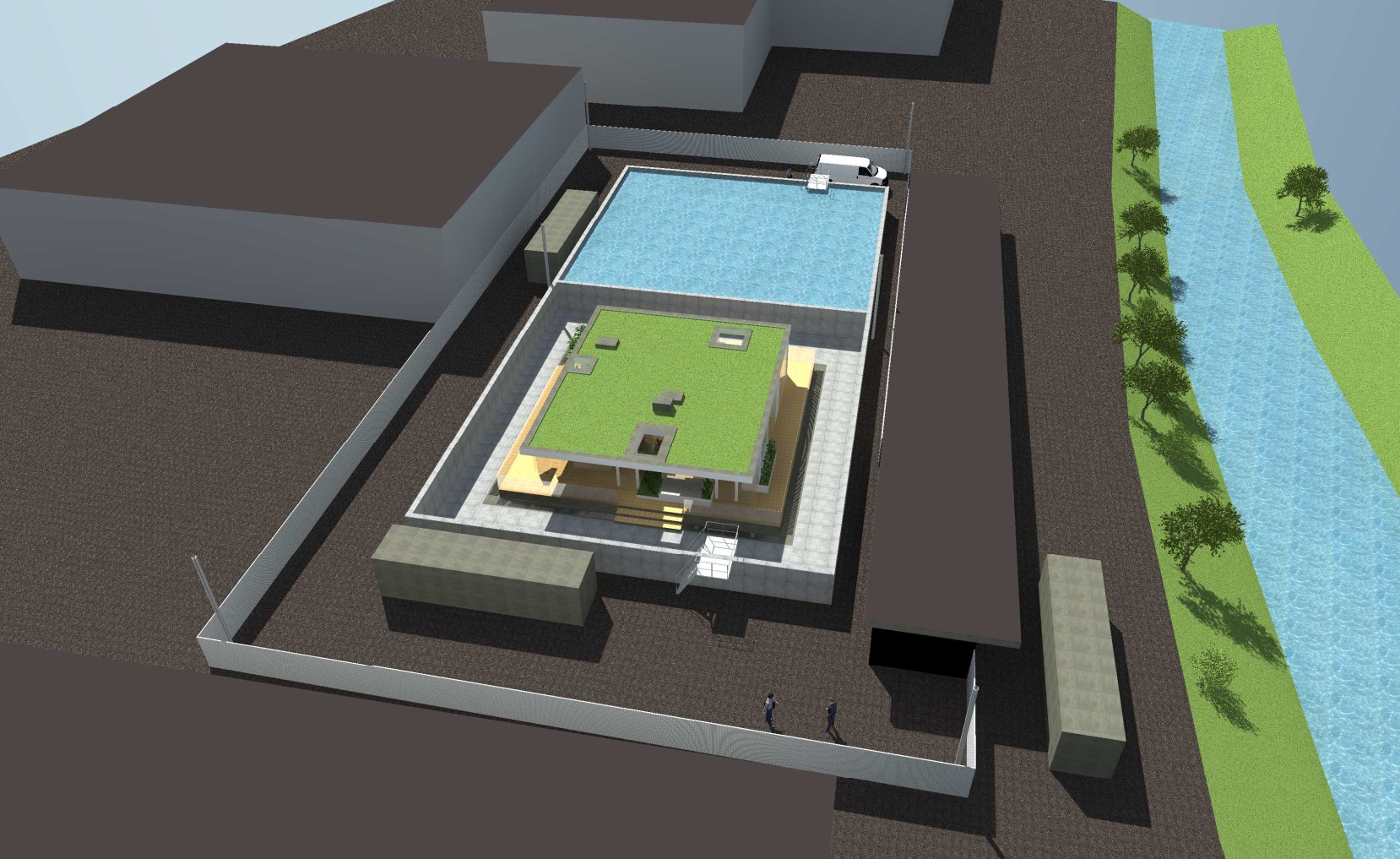 erweitere die umliegenden fl che der beton um dem mittleren geb ude soll aus edelstahl sein