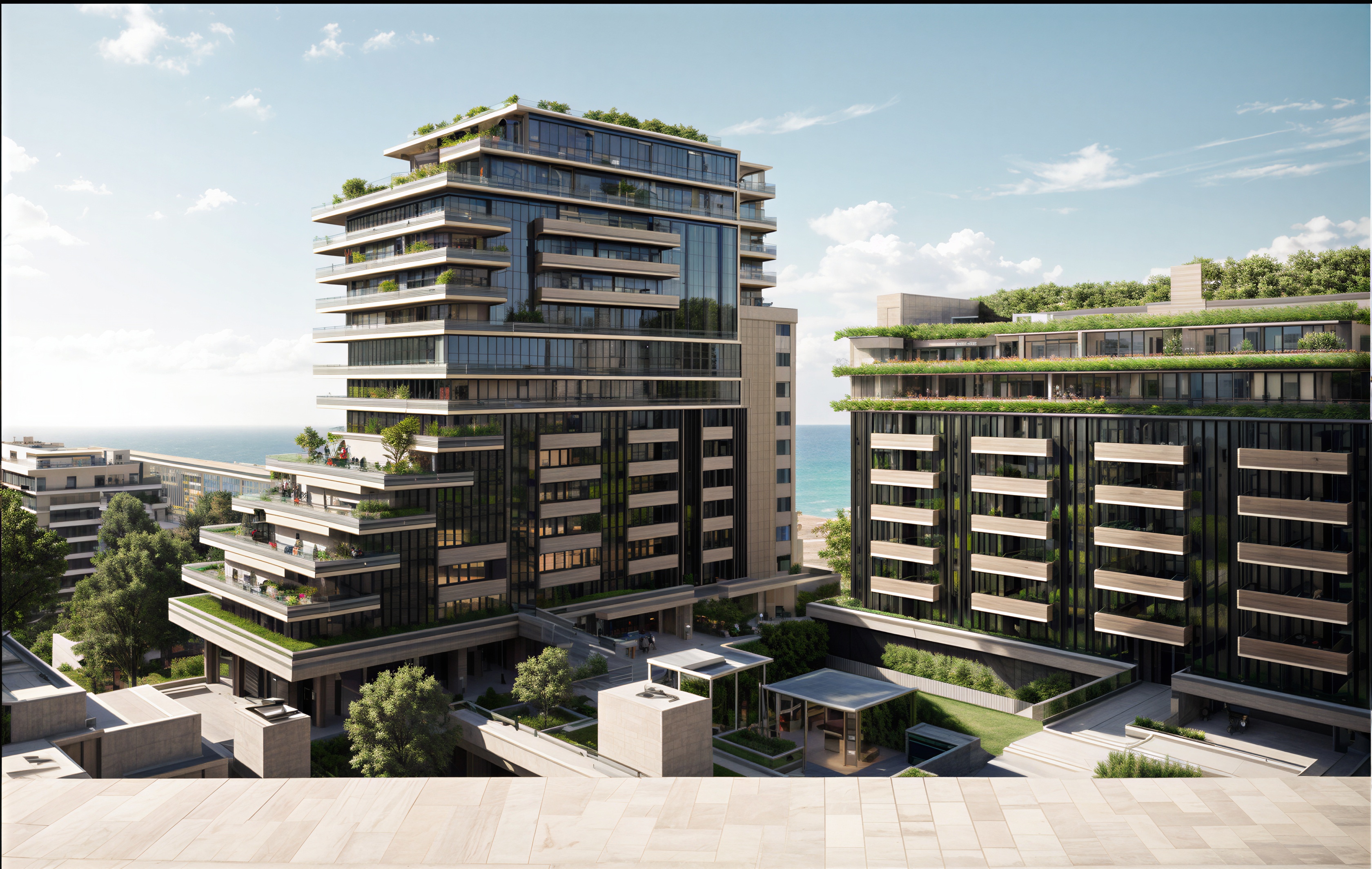 exterior shot preserve the image composition tone and lighting enhance vegetation density and realism while keeping architectural geometry and fa ade texture unchanged integrate natural shadow depth and refine light transitions for a soft realistic finish