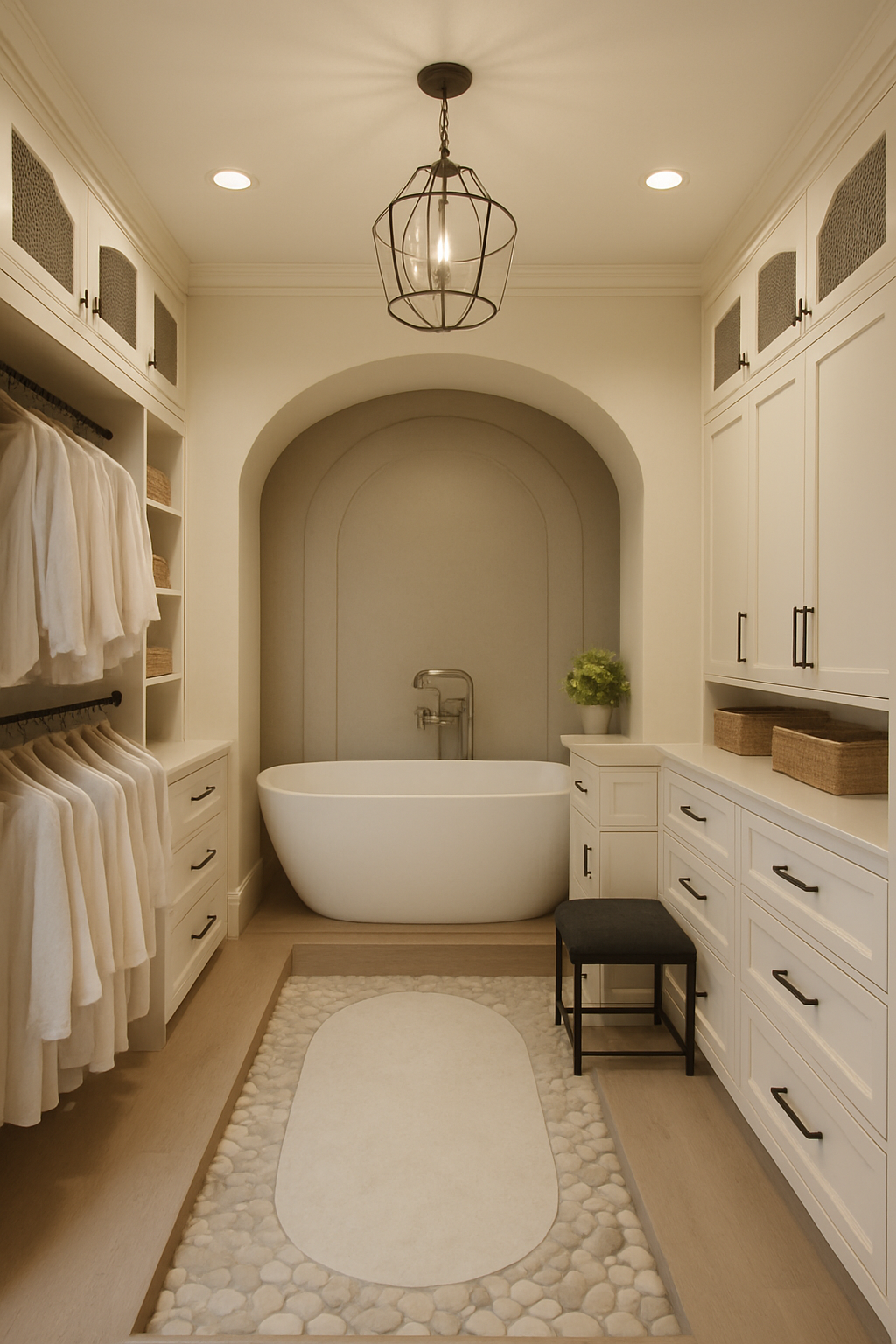 exterior shot what s inside the arch it s actually a vanity with a mirror two light lamp on each side of the mirror and a bench