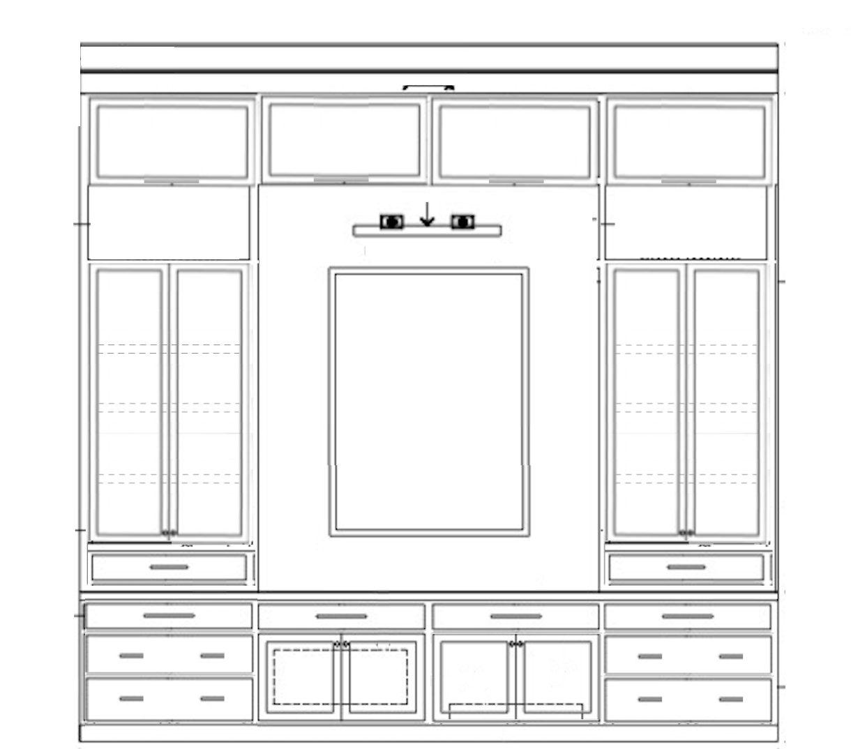 interior shot wood stained cabinetry with glass inserts in one section cabinetry is 14 wide and 13 high