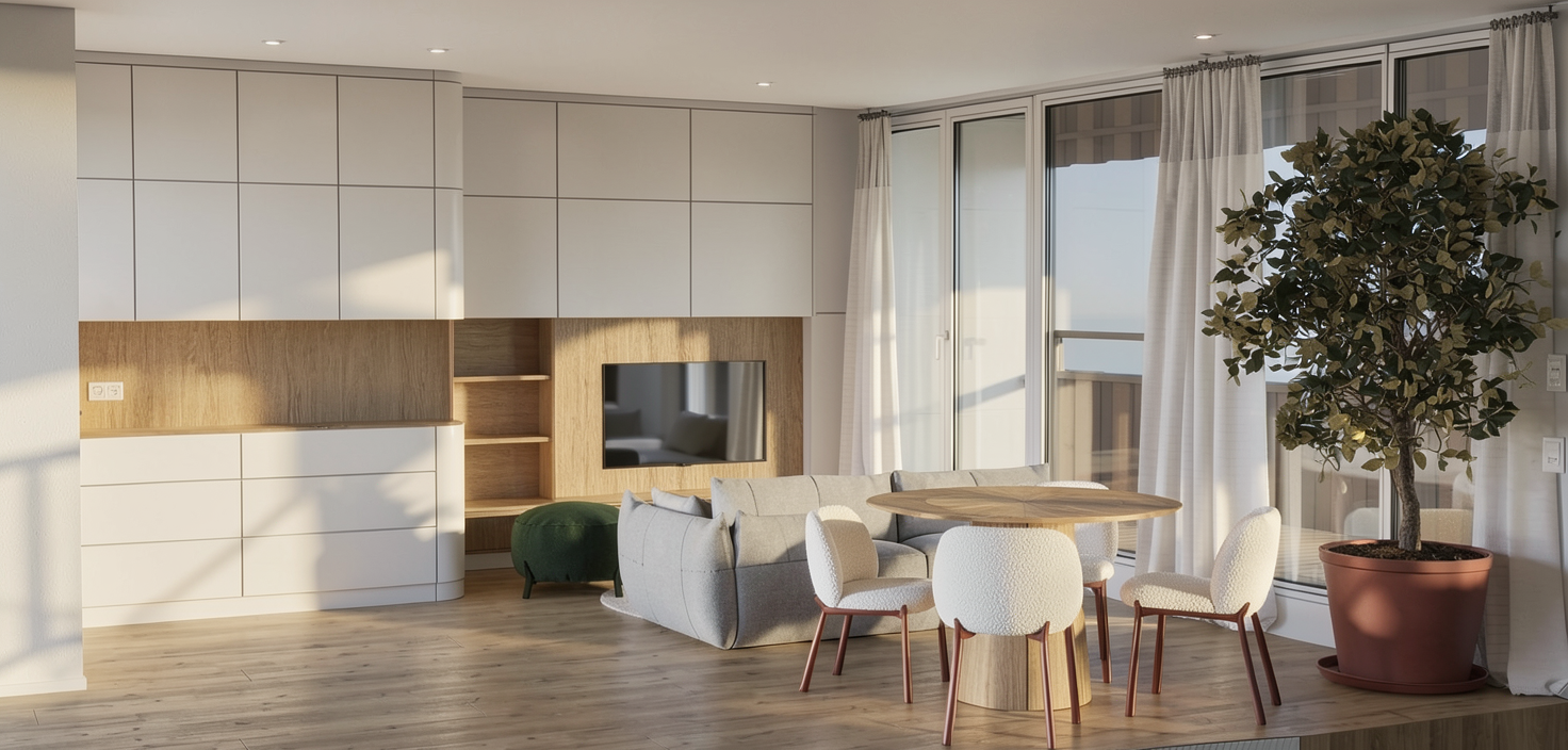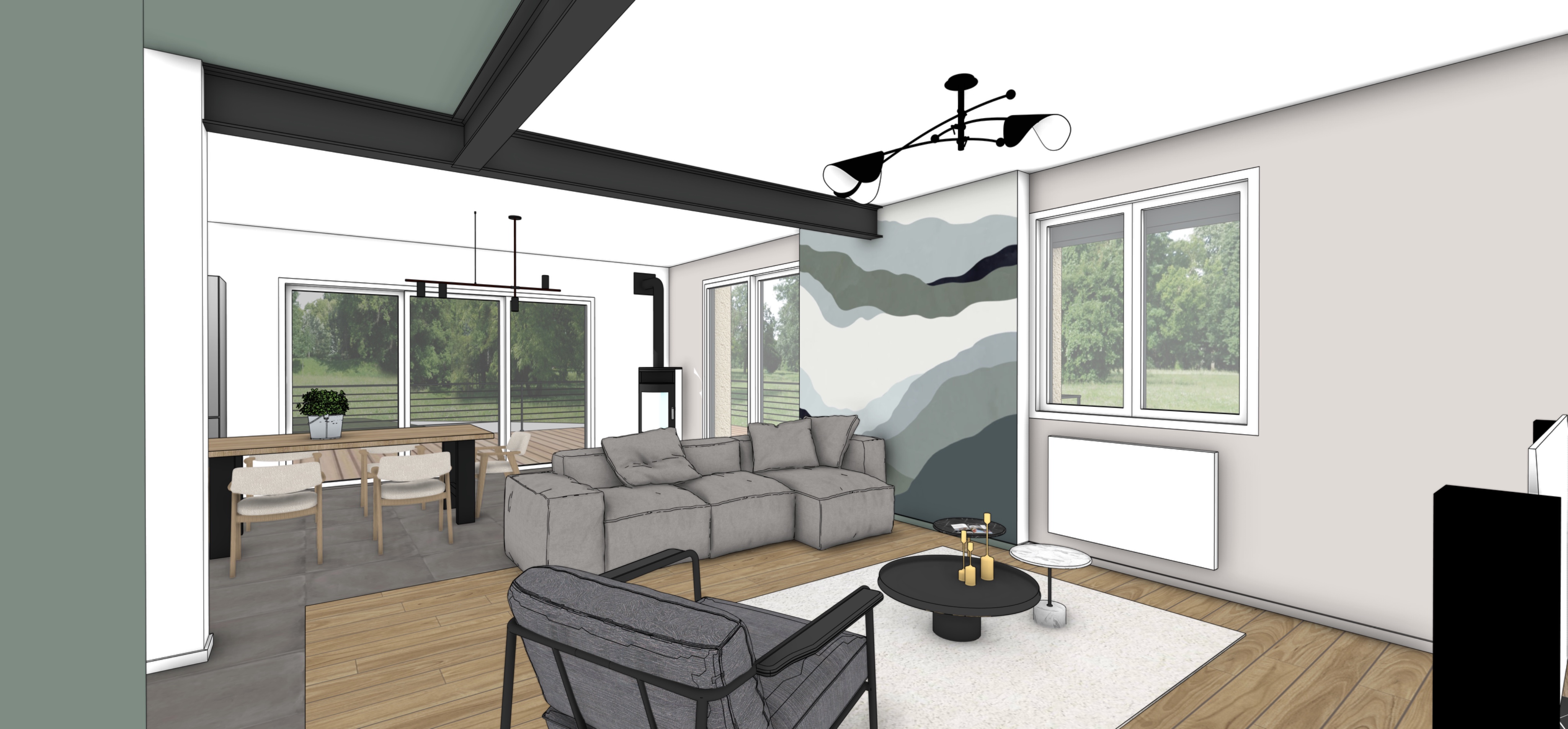 keep the materials colors and volumes the wave like graphic has a matte finish the lighting should remain natural and balanced avoid harsh golden light or overly warm sunlight the scene should benefit from soft neutral daylight with a slight warm tone for a realistic unsaturated atmosphere all other elements of the scene should remain the same