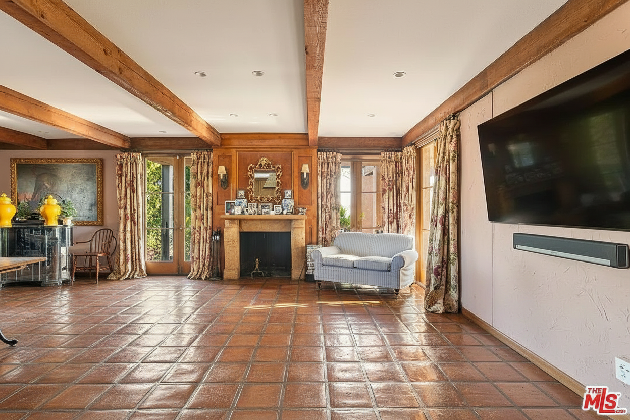 provide photo relaistic landscape render sunny afternoon with some shadowing show kitchen diner behind the windows in the distnace someone standing at the bbq in the distance and a group of friends sitting on the sofa around the firepit table keep to the orignal image do not add any additional componants to the image