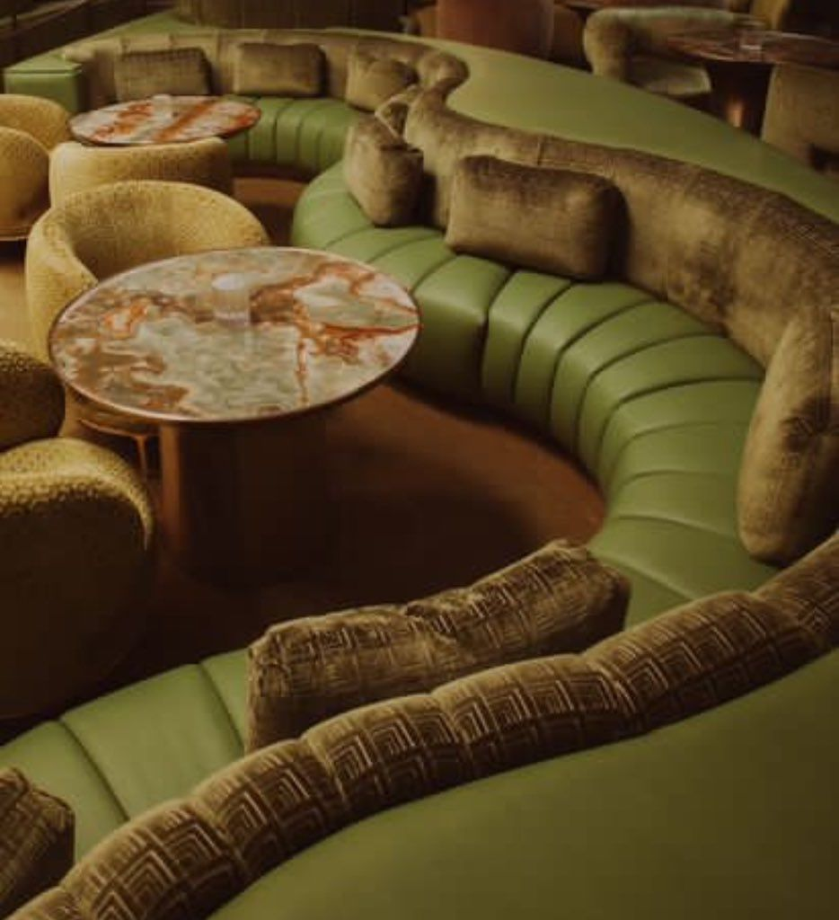change the color palette in this exact image to shades of rust deep plum and gold the vibe should feel sultry render in 4k for an editorial ready image the candle on the table provides a moody soft circular glow lighting is dim and very warm at this night time cocktail lounge