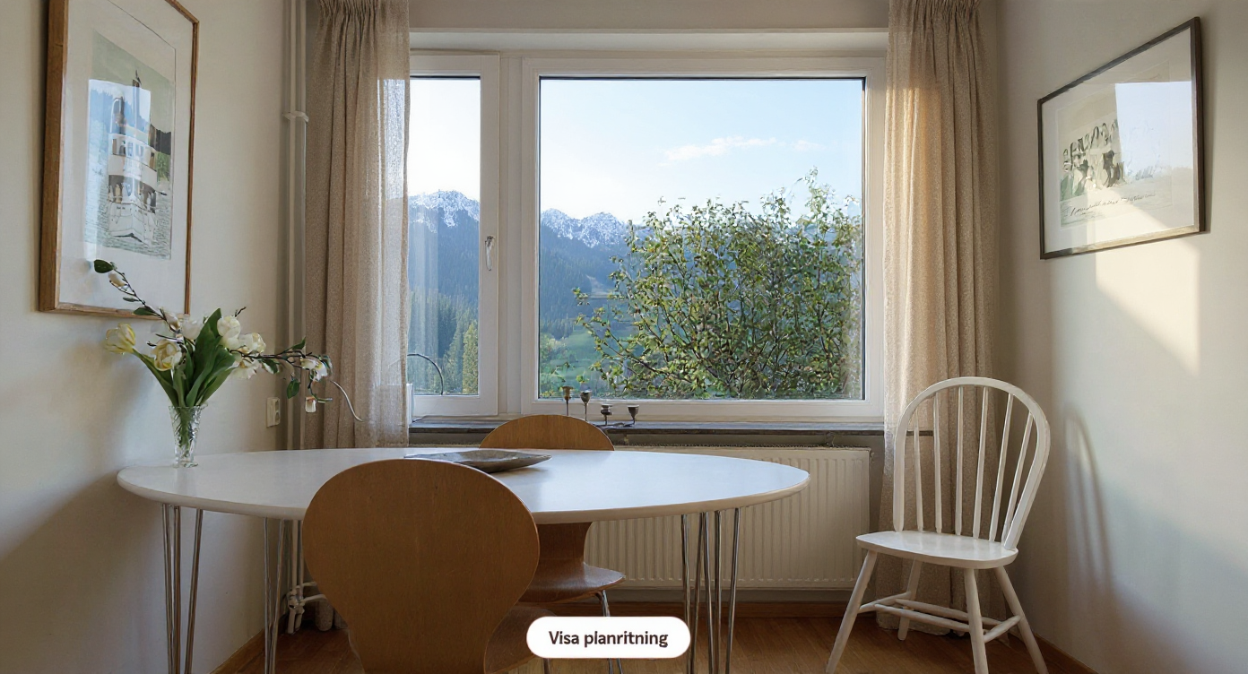 add curtaisn in the window the curtains has to cover 60 of the window keep the original wiev the curtains should help to decrease visibility from the oppsosite house add a sofa some oarmacharis and a big rug in fron tof the window the curatains should only be to the left and the right not in the middle