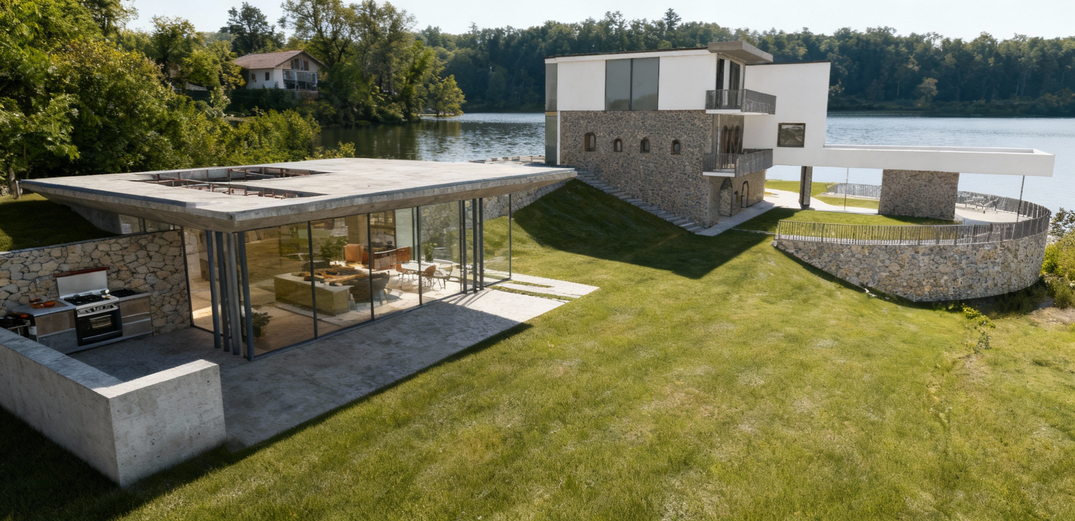 change the bathroom cabinet and floating shelves from gray to oak wood and move the mirror a little higher than the cabinet