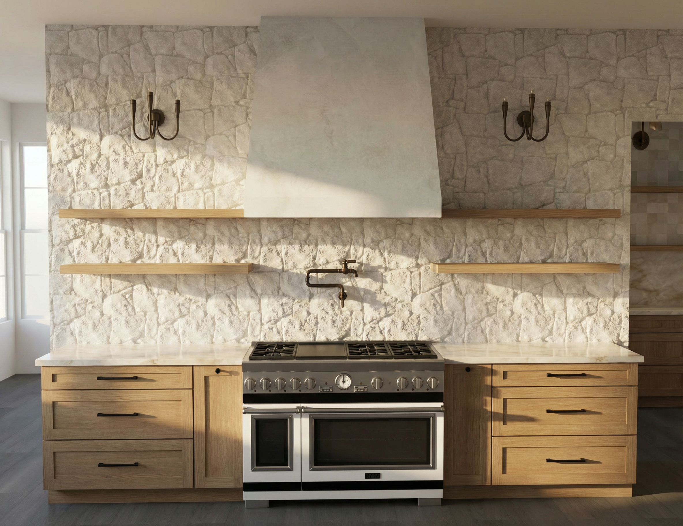 luxurious interior of an a well lit master bedroom with a feature wall separating the wall in wardrobe area