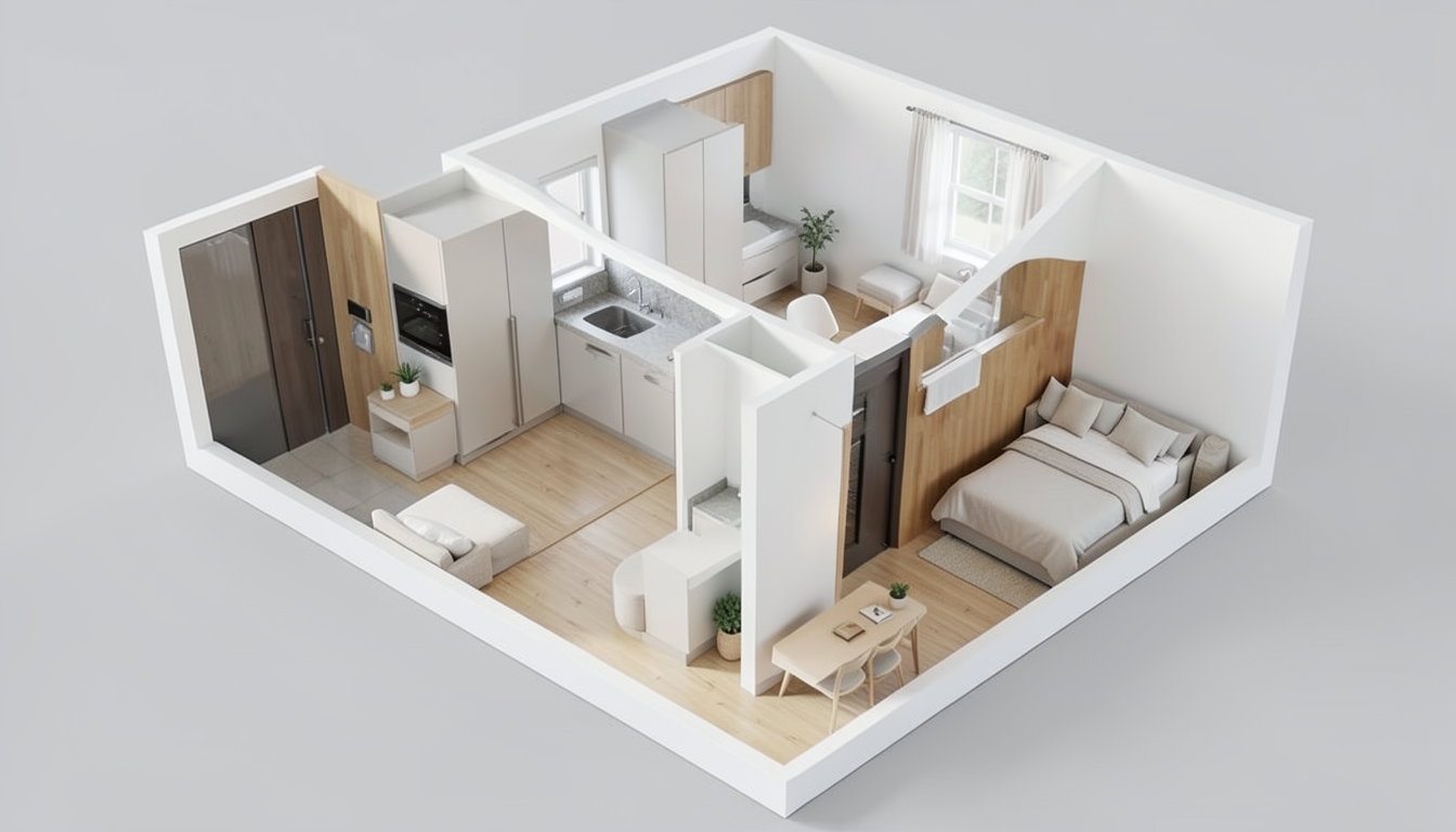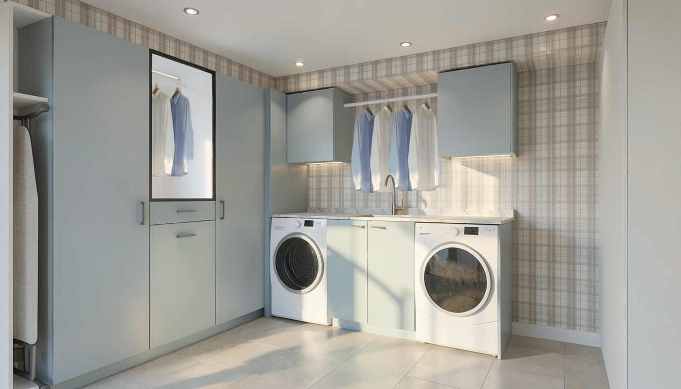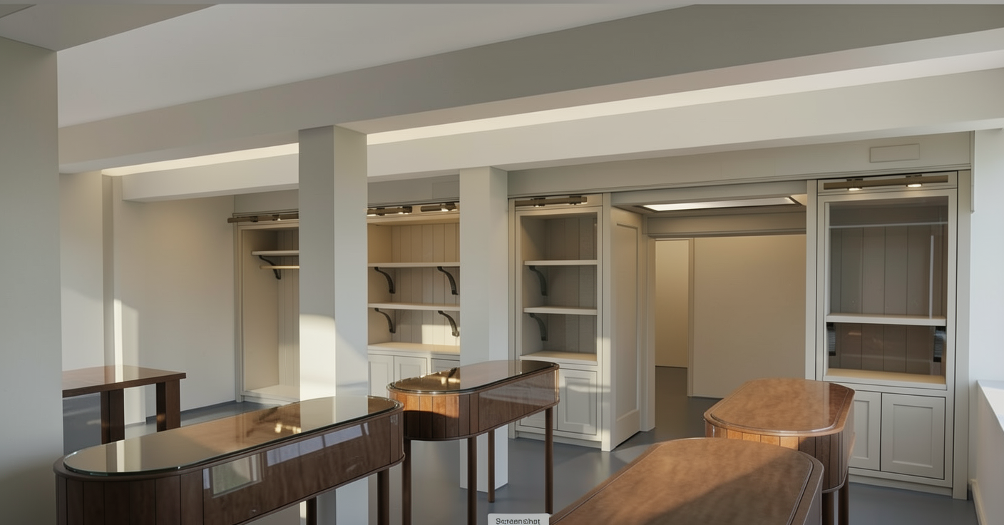 mejora es imagen para que sea lo mas realista posible ademas elimina la ilumiancion natural existen ventanas por tanto solo hay iluminacion artificial el color de los muebkes es azul talco