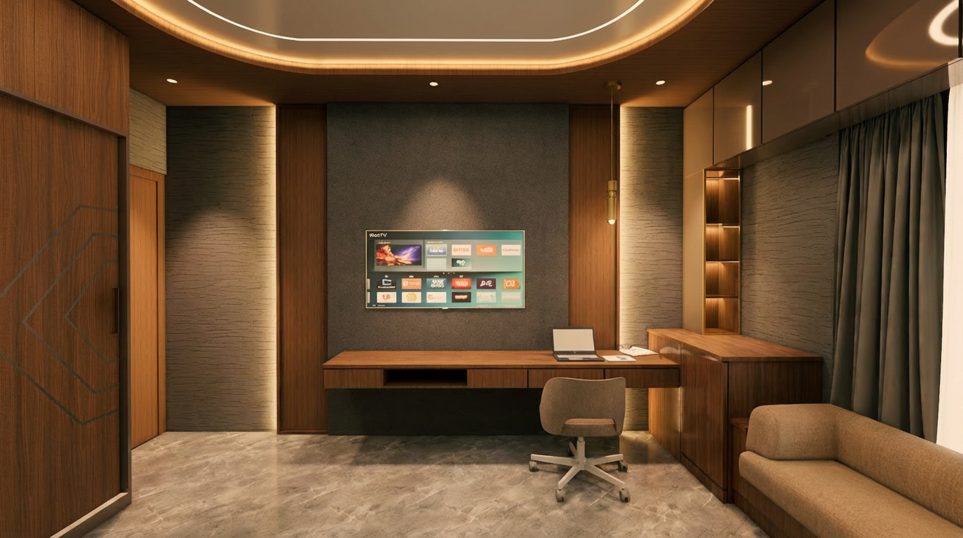 just remove the warm light in the wood boarder of the ceiling