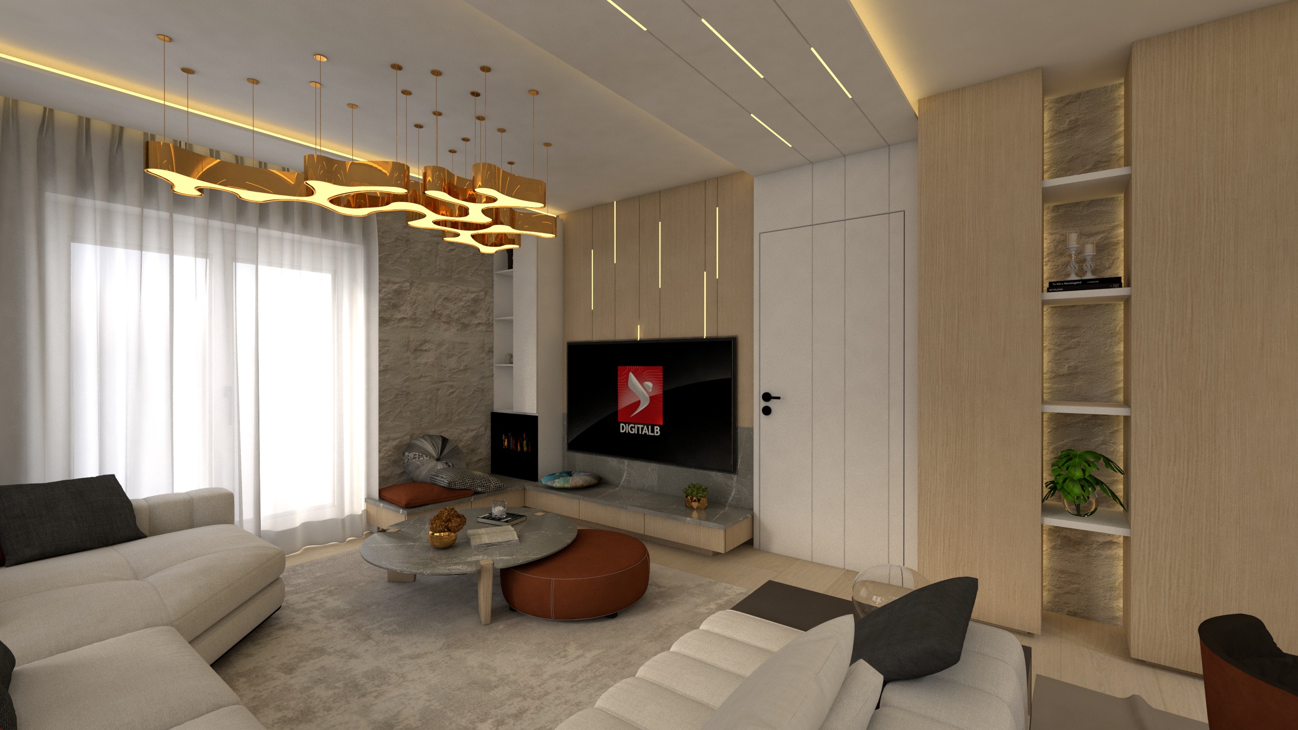 this is an already finished interior render of a japandi minimalist living room do not change the design layout materials textures or colors keep all existing materials exactly as they are and respect the original color palette and textures your task is only to refine and enhance the realism of the existing scene harmonize the materials and improve their visual realism while keeping the same textures and colors increase material realism natural shading and surface detail without replacing or altering the materials living room with low profile fabric sofas warm brown cushions brown leather pouf neutral rug cool light beige wooden wall panels combined with natural stone wall cladding introduce natural sunlight entering the interior from windows creating soft realistic shadows and natural light gradients improve global illumination realistic reflections and contact shadows architectural visualization quality ultra photorealistic rendering physically accurate lighting ray tracing global illumination subtle imperfections realistic material response to light architectural photography style eye level camera 35mm lens depth of field 8k render preserve original design and materials enhance realism only natural material variation subtle imperfections realistic lighting