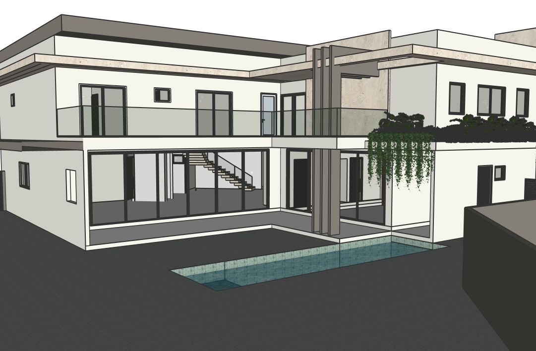 make it ultra realistic keep materials make pool coming out of the house add a water fall on top of it where is coming out of the house