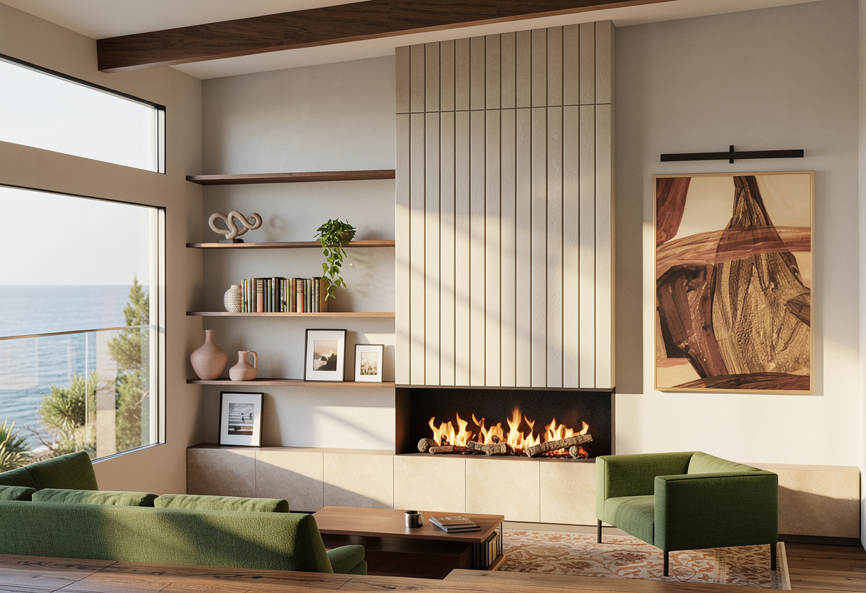 scandinavian style black siding and wood details side wings are open covered porches landscape is pine trees