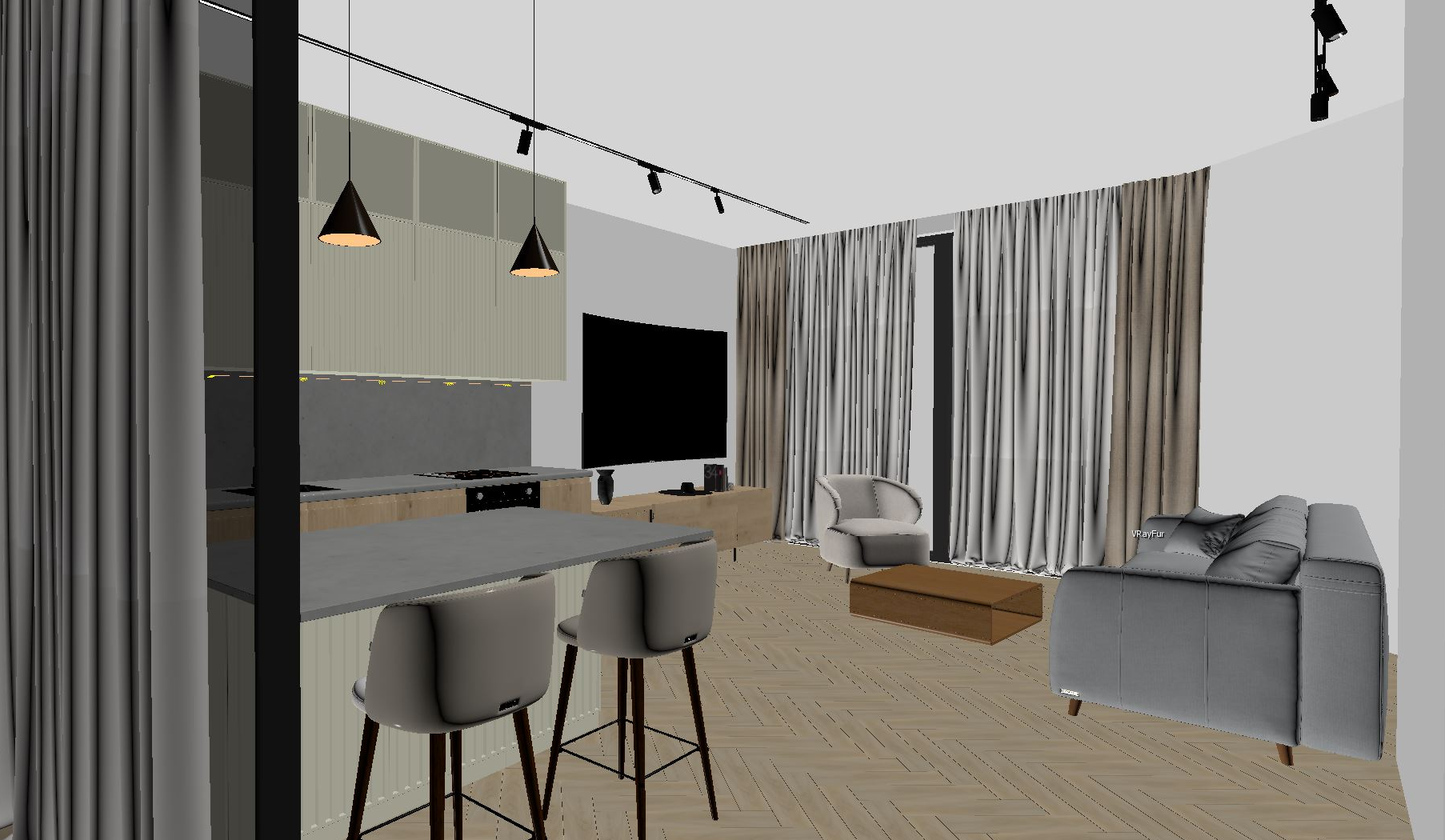 atlikti fotorealistin vizualizacij ap vietimas po virtuv s spintel mis ap vietimas u uolaid ni ose aksesuarai ant stalvir io ir arbatinio staliuko langas iki em s