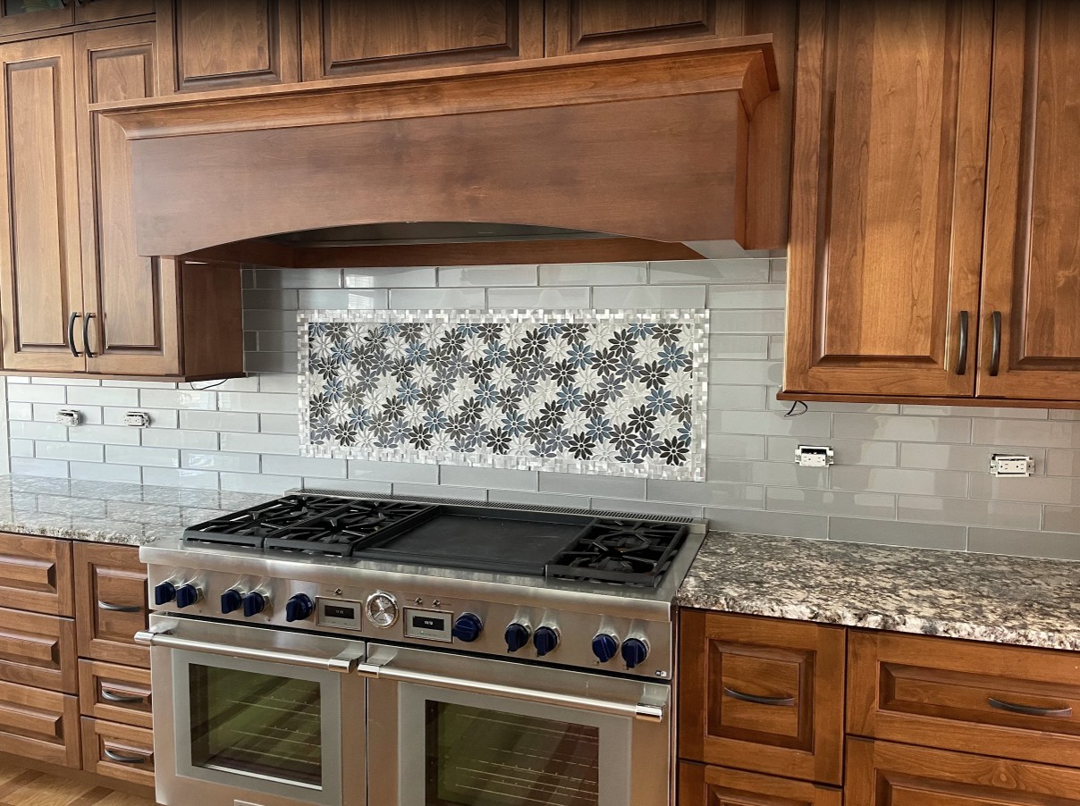 do not change the cabinets in any way preserve the exact cabinet colors materials finishes dimensions door and drawer styles hardware spacing alignment and all geometry exactly as shown do not alter the countertop shape backsplash appliances flooring lighting fixtures or wall structure only remove the construction materials clutter and mess from the scene clean the room and make it look finished and staged add a few simple tasteful home accessories appropriate for the style of the space such as a small plant soap dispenser or hand towel but do not add or remove any furniture windows or architectural elements maintain the original lighting direction and realism enhance clarity and polish the photo while keeping the cabinetry and room design completely unchanged add covers to the outlets change the countertops to white quartz and all white tile backsplash