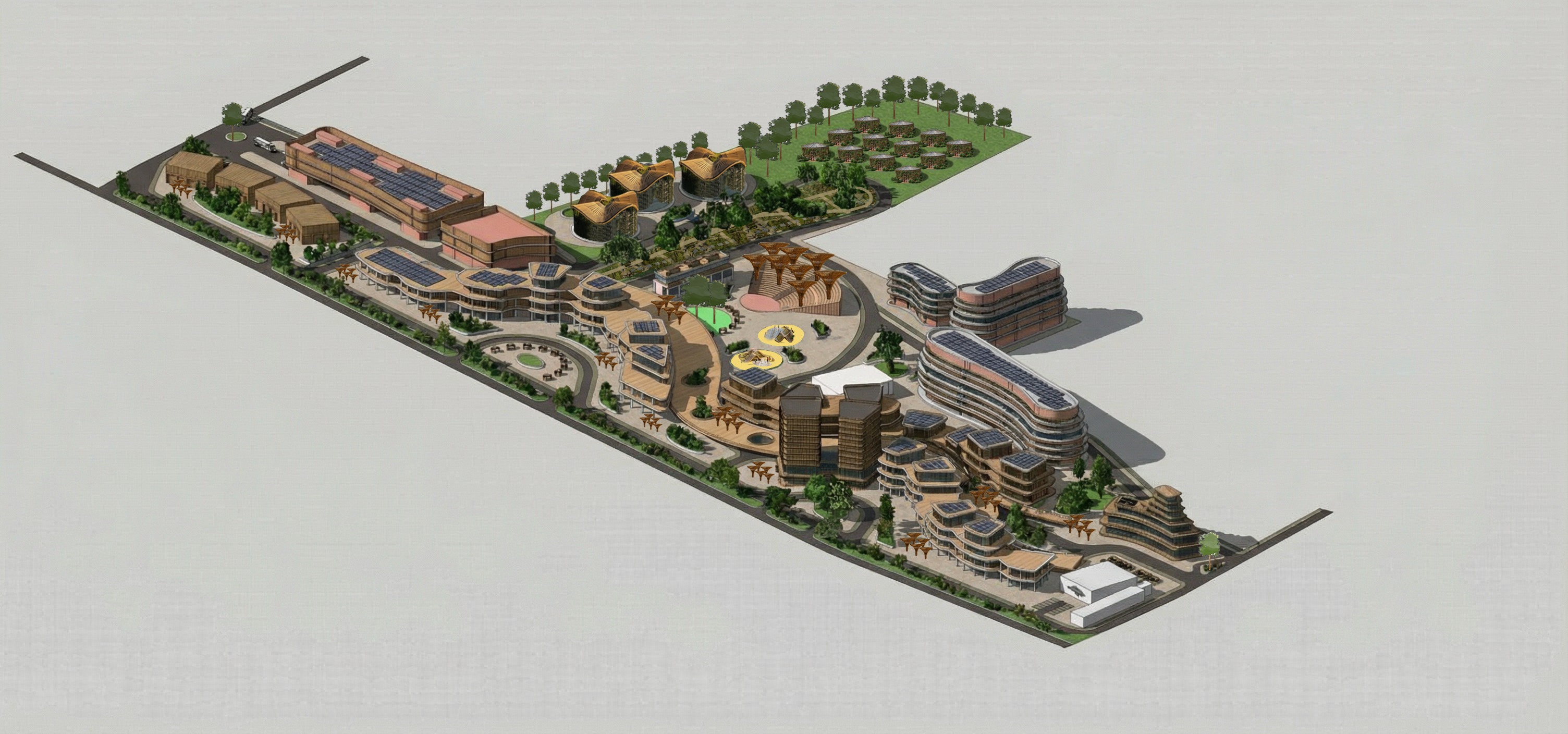 architectural visualization render of the uploaded image the uploaded image is a photoshop photomontage and must be treated as the final composition camera lock critical the camera position camera angle field of view perspective framing and crop must remain 100 identical to the uploaded image no camera movement no zoom no rotation no shift no recomposition the uploaded image already contains the exact camera placement required generate a hyper realistic architectural render from the photomontage improve realism only through materials textures lighting shadows reflections vegetation realism and atmospheric depth do not invent any new geometry do not redesign reinterpret or add architectural elements do not change scale massing or forms treat all existing elements as fixed and final the task is rendering only not design output should resemble a professional architectural competition level visualization while strictly preserving the original image structure and viewpoint